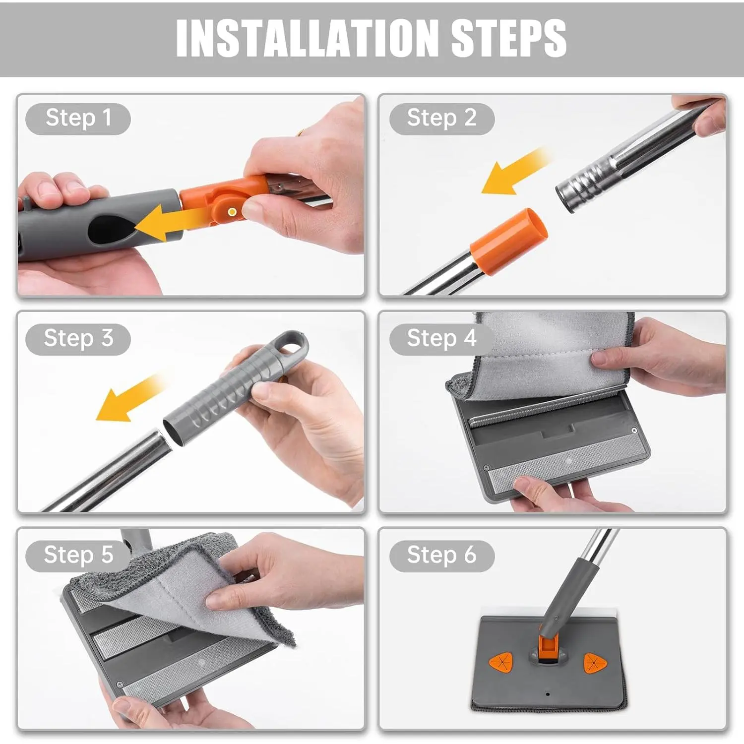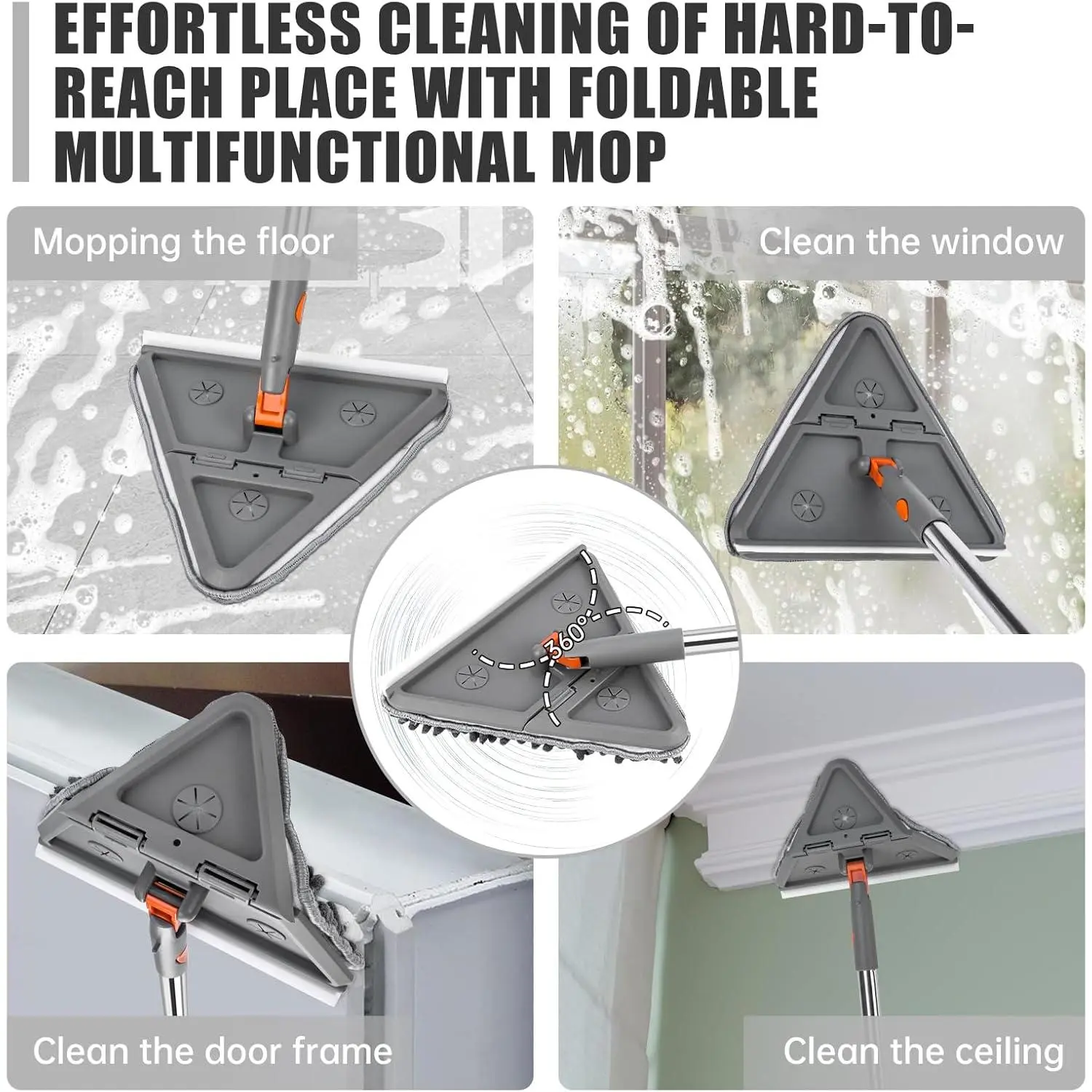 This 360° rotatable cleaning mop with extendable long handle easily reaches walls, baseboards, ceilings and corners without bending or using a ladder.It comes with 8 reusable pads and complete accessories for dry and wet cleaning all around your home.