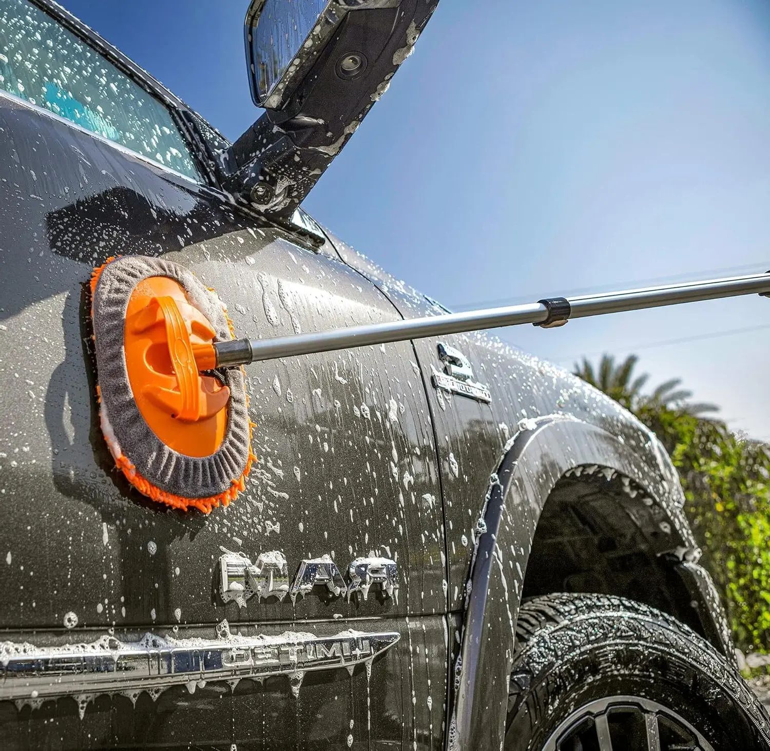 USE BY HAND OR POP ONTO AN EXTENSION POLE (NOT INCLUDED) - Grip the Extend-A-Reach exterior car cleaning attachment by hand to take care of your nearby cleaning needs. But if you want to clean far-away targets, such as the roof of your car or RV, extend your car duster to your exact cleaning needs by screwing it onto a pole with universal threading, standard US threading, or ¾ inch Acme threading. Reach high-up to those hard-to-reach surfaces! Pole is not included.