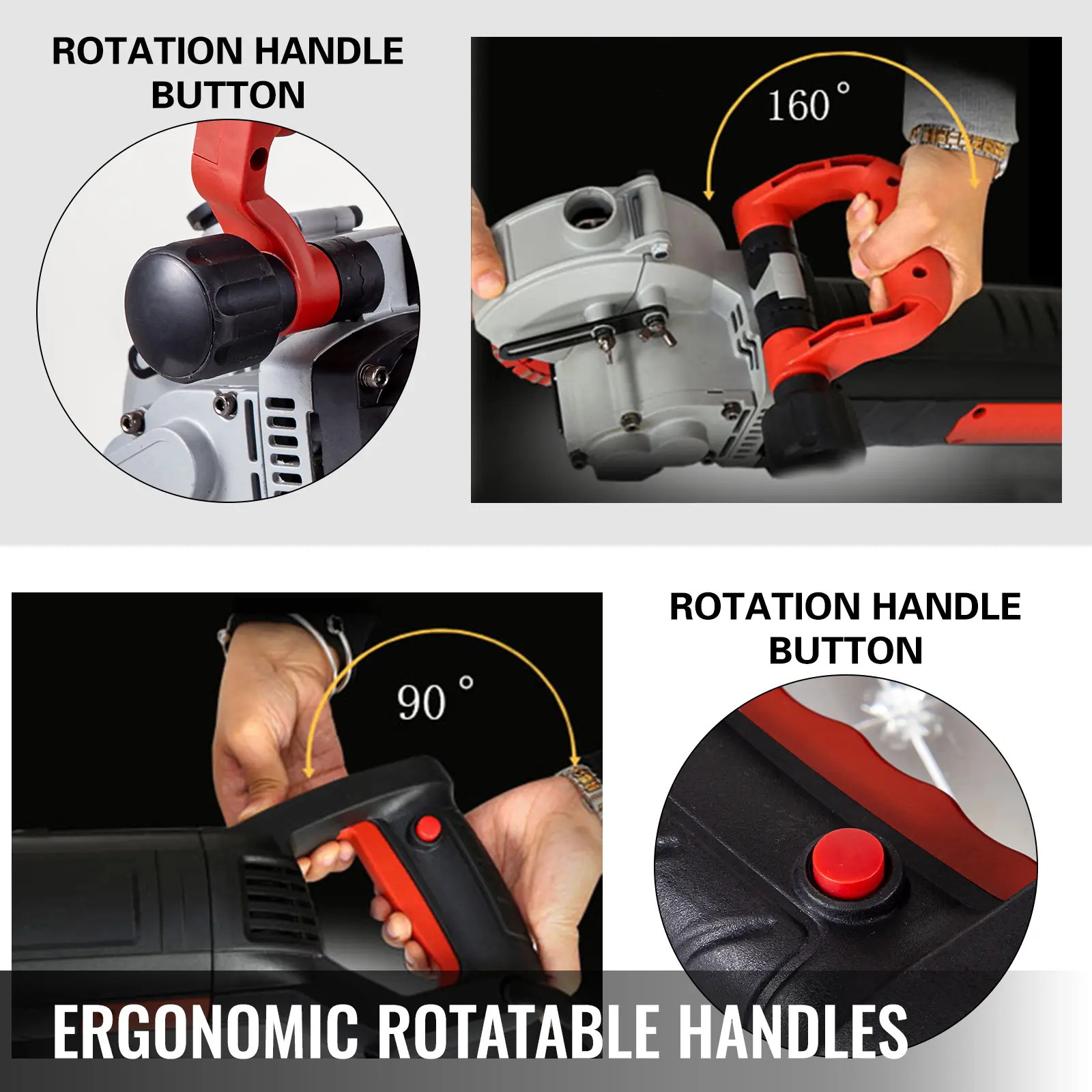 • 【EXCELLENT PORTABILITY & HIGH EFFICIENCY】 - This wall chaser cutter is highly efficient with two ergonomic handles that are both angle adjustable and a pure copper motor which provides good support for the operation of the machine. Furthermore, it comes with a leakage protector for safety.