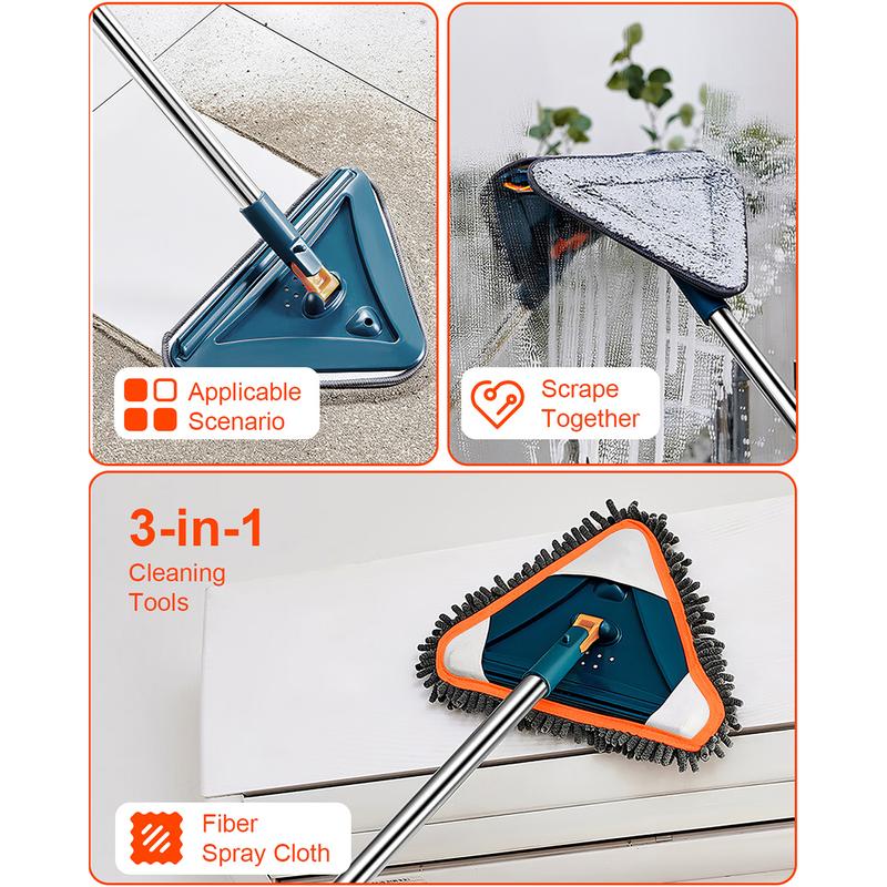 ·Mop Head: The 360° swiveling triangle mop head can be easily bent into various angles. No more hard-to-reach areas or stubborn dirt! So you can effortlessly clean wall dead angles and fit under furniture with ease.