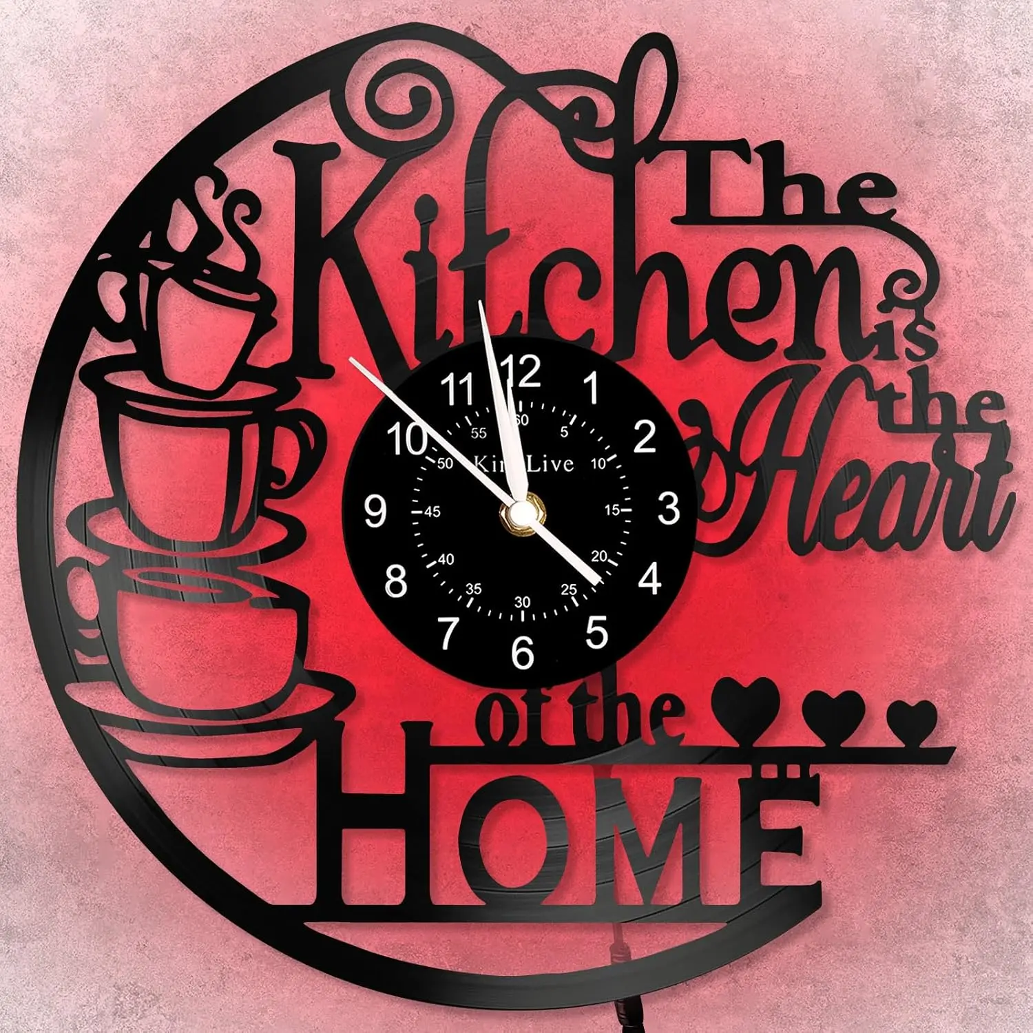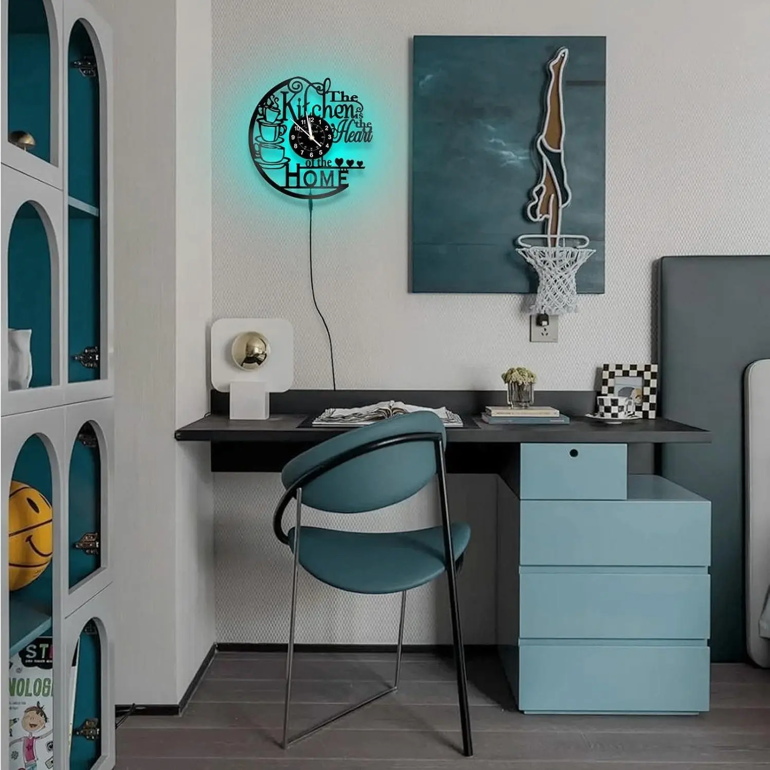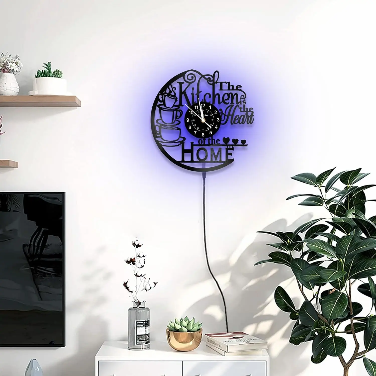Kitchen Themed Wall Clock, 1 Count Battery Powered Wall Clock with LED Night Light, Led Wall Clocks, Decorative Wall Clock for Home Kitchen Coffee Shop (without Battery)
