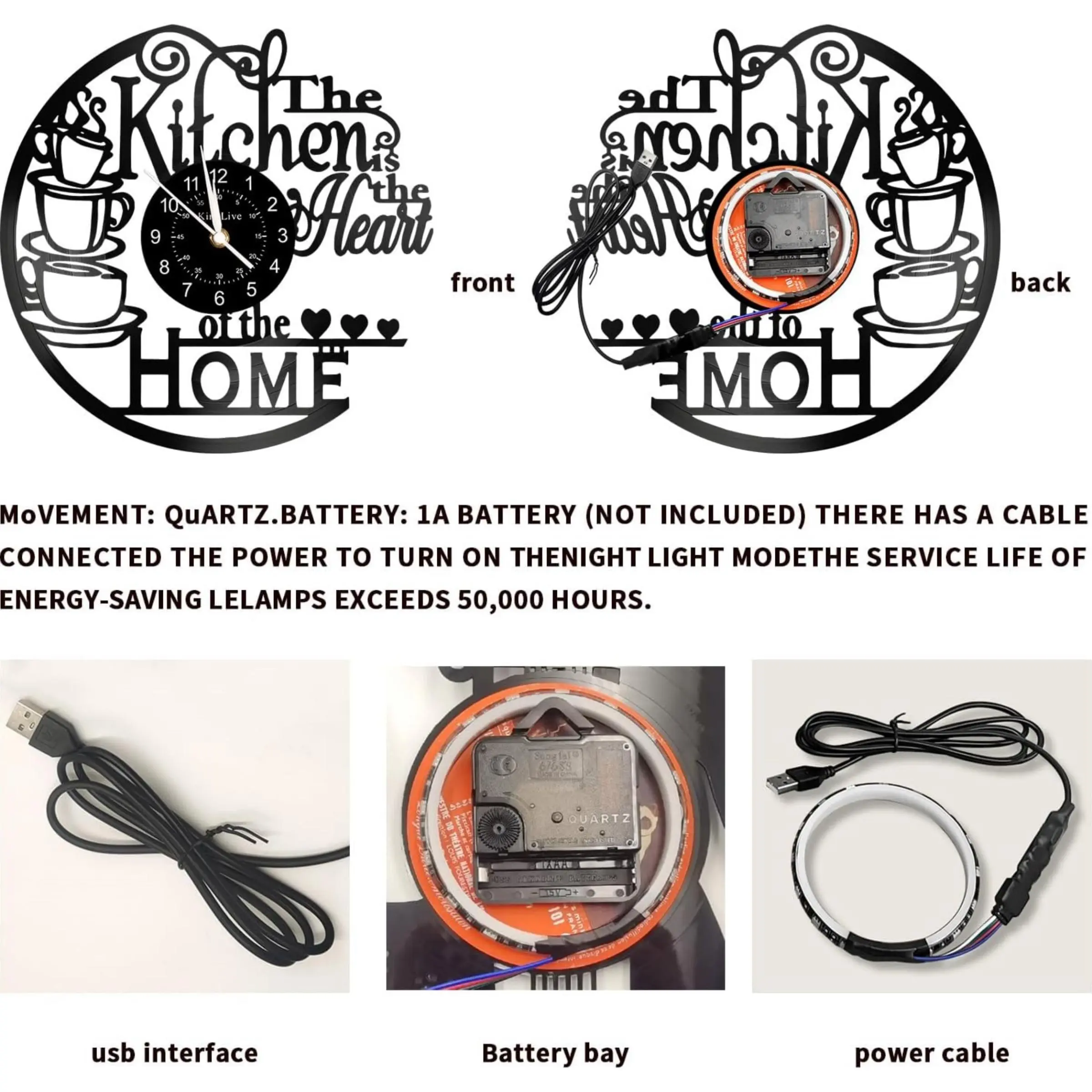 This clock itself is very flimsy. The hands are very easy to bend. They left a note on the remote packaging saying they removed the battery from it. This clock has a very short cord if you want to plug it in to change the background color. You will need an extension cord to reach wall socket.
