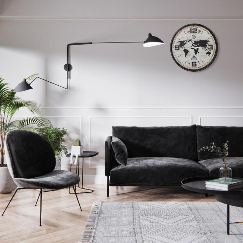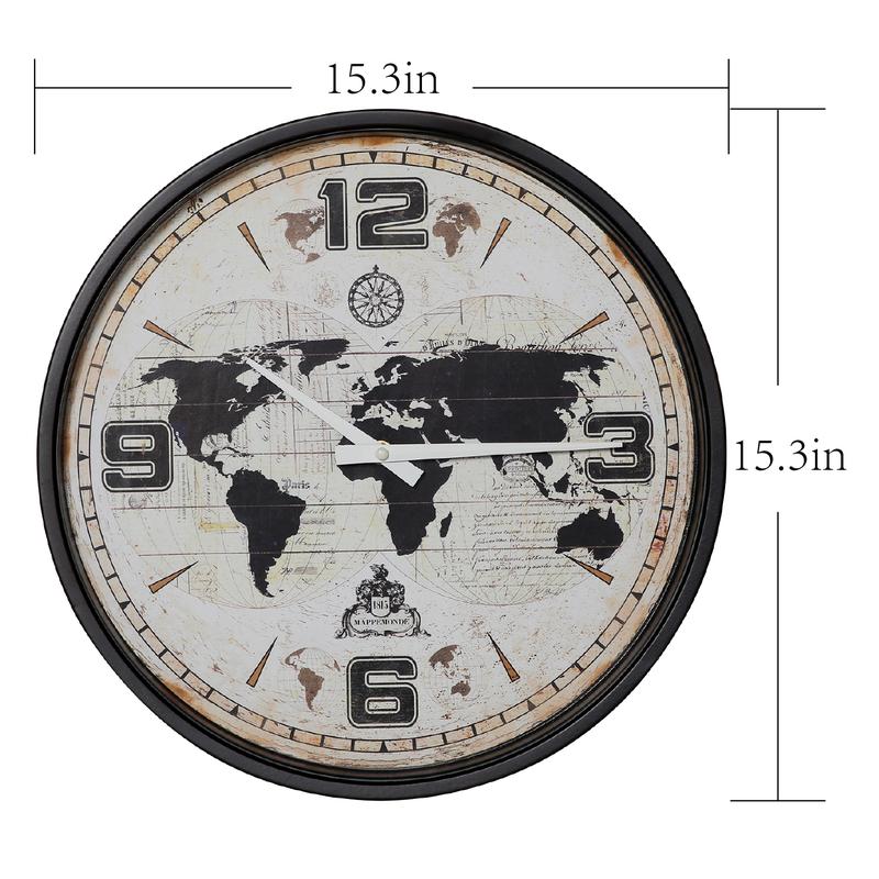 ·Modern Minimalist Design: The black frame is made of high-quality iron, stylish and modern map illustration dial, artistic digital font design. The large numbers are clear and easy to read, and the front glass cover ensures a clear view, this functional art is both beautiful and practical!