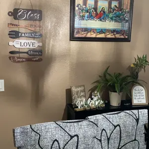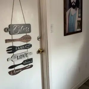 Encantada con mi decoraciones para la cocina de la casa, adornan muy bien el espacio de salida para afuera. Con frases hermosas de motivación, diferentes colores y en diseños de madera. A un buen precio ✅️👌❤️✨️ Lo mejor de lo mejor. Dándole un toque a mi cocina 🍀