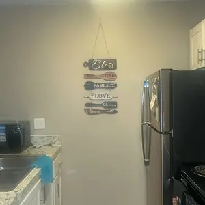 Me encanta este letrero de madera de 6 piezas para mi cocina me encanta el hermoso mjs que tiene y es muy bonito y elegante en nuestra pared