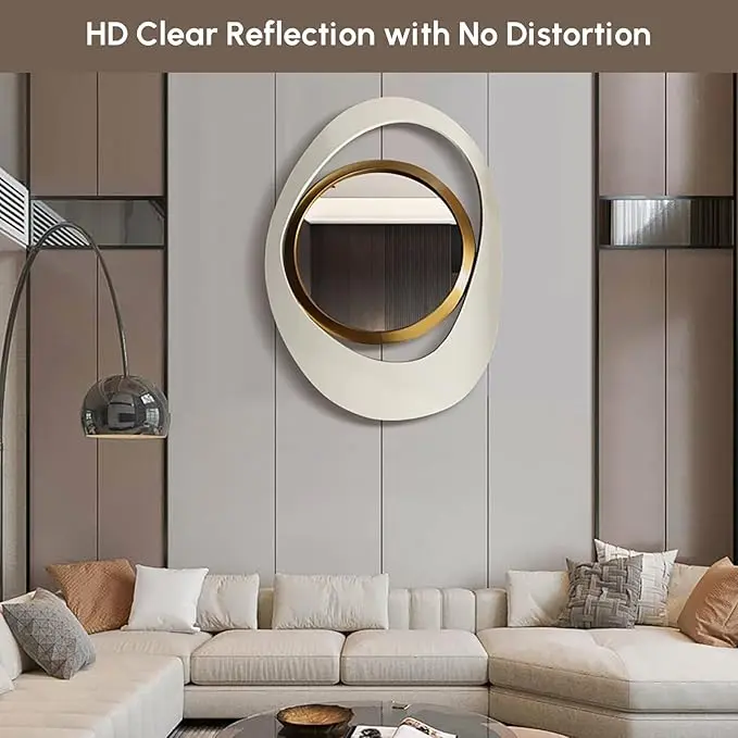 Introducing our One Piece Elegant 23.6-Inch White & Gold Geometric Decorative Reflective Wall Mirror! Perfect for living rooms, entryways, or bedrooms, this modern mirror ensures clear images without distortion. The large reflective surface brightens any room, adding elegance to your home decor.