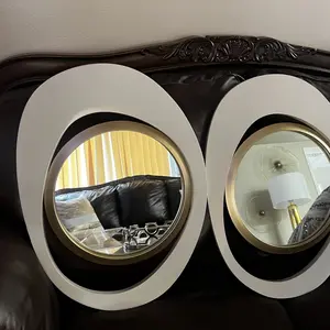 🌟 One Piece Elegant 23.6-Inch White & Gold Geometric Decorative Reflective Glass Wall Mirror 🌟