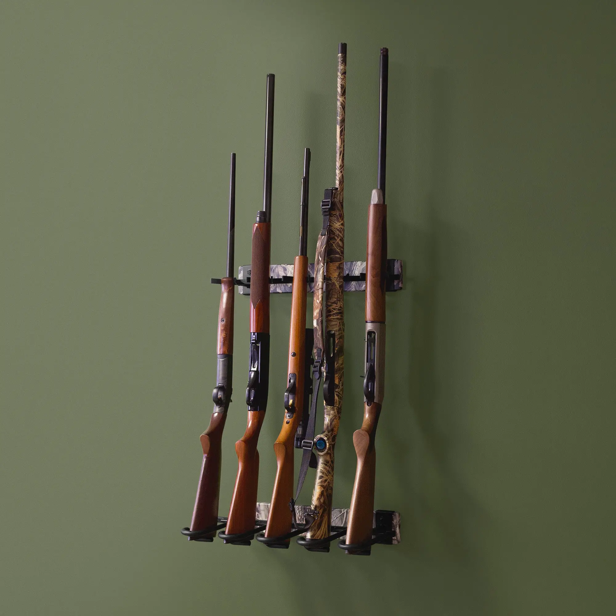 ·5 slots for wall mount firearm display and storage
