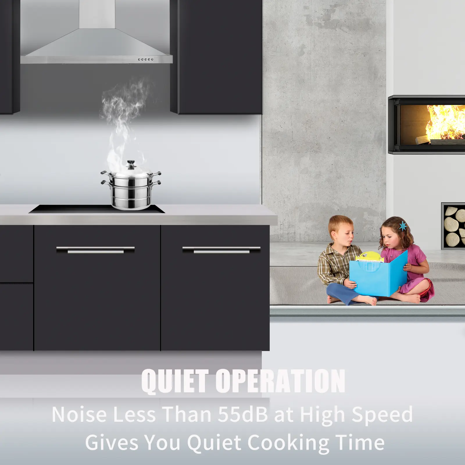 ·Package Included: 1 x Range Hood; 2 x Stainless Steel Chimney Cover; 2 x Stainless Steel Filters; 1 x Soft Flexible Pipe; 1 x Instruction; 1 x Installation Kits