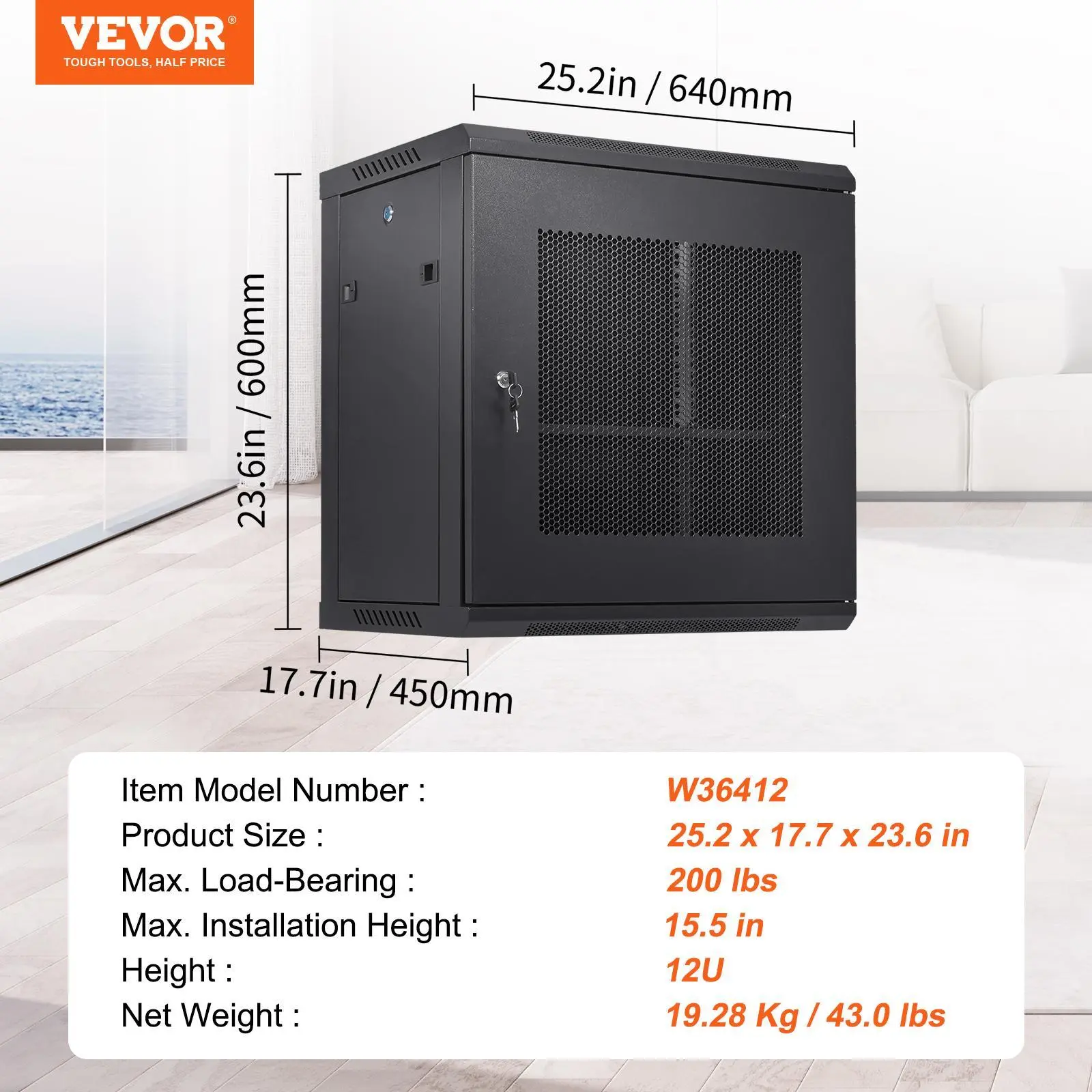 5. VEVOR 12U Wall Mount Server Cabinet, 15.5'' Depth, Network Rack Enclosure, Supports up to 200 lbs, Secure Locking System, Ideal for IT Hardware, Audio/Video Components