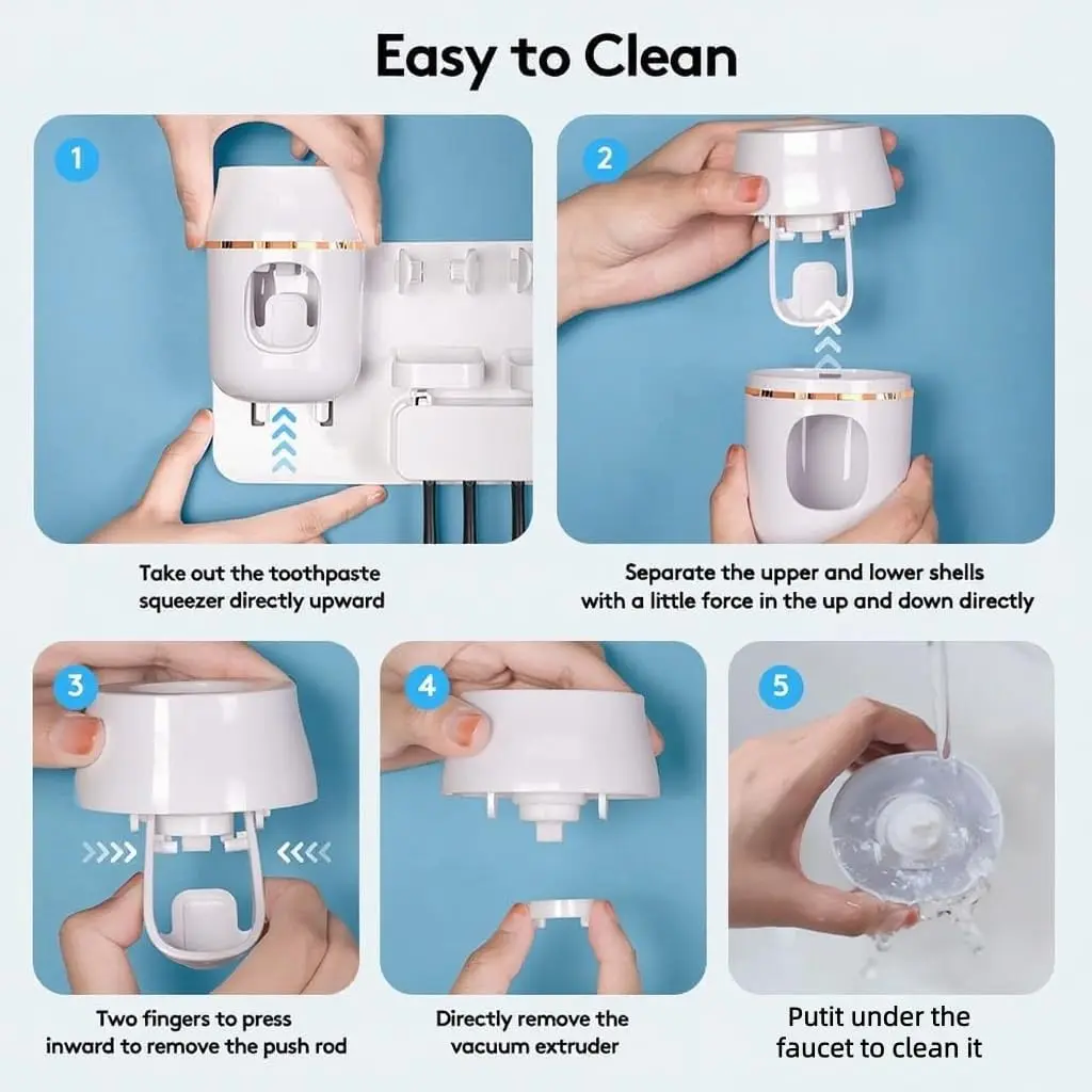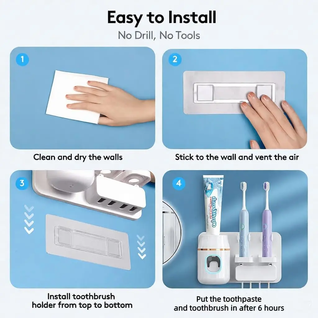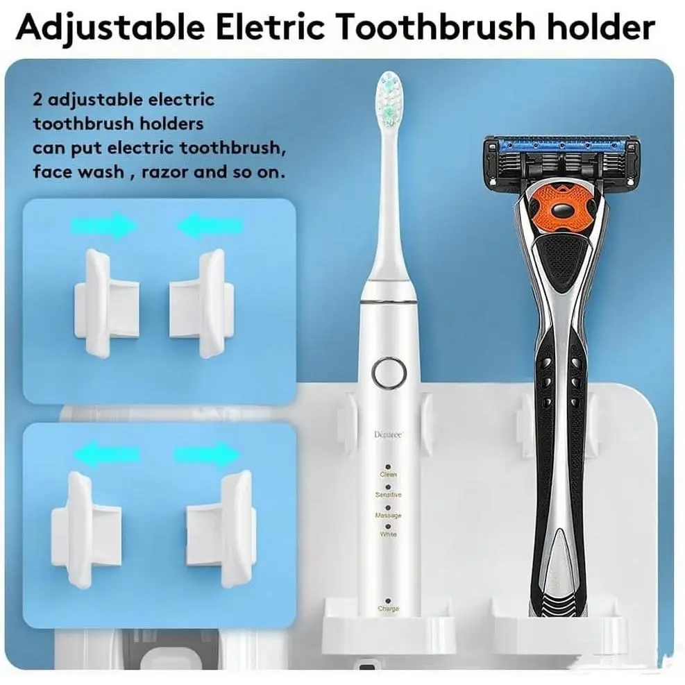 Toothpaste Dispenser Wall Mounted, Automatic Toothpaste Dispenser for Kids, Toothbrush Dispenser for Bathroom with 4 Toothbrush Slots