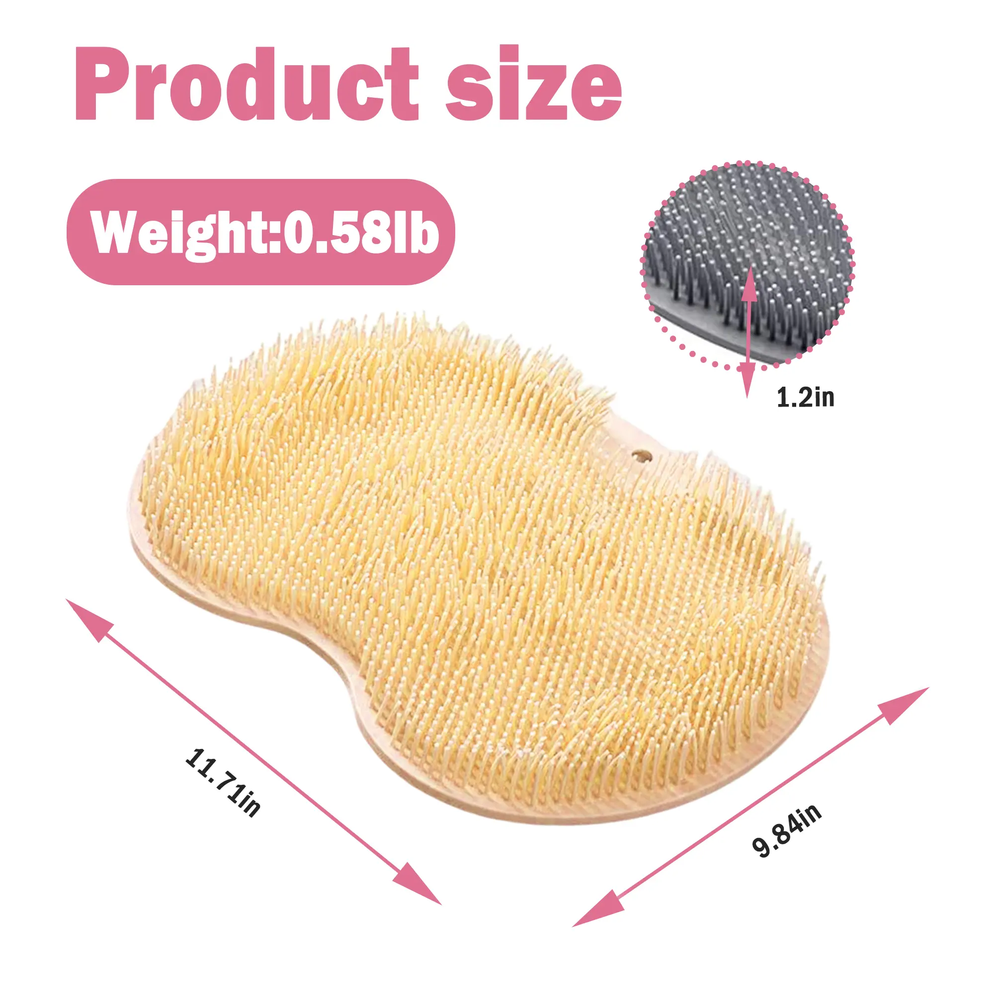 So disappointed in this product! The bristles are too hard for feet 👣 or back. It is small and has a feet indentation so not all the bristles are the same size. I would return it if f I didn’t have to pay back the shipping. No stars if that was an option. Definitely a dollar tree quality item, don’t bother purchasing!