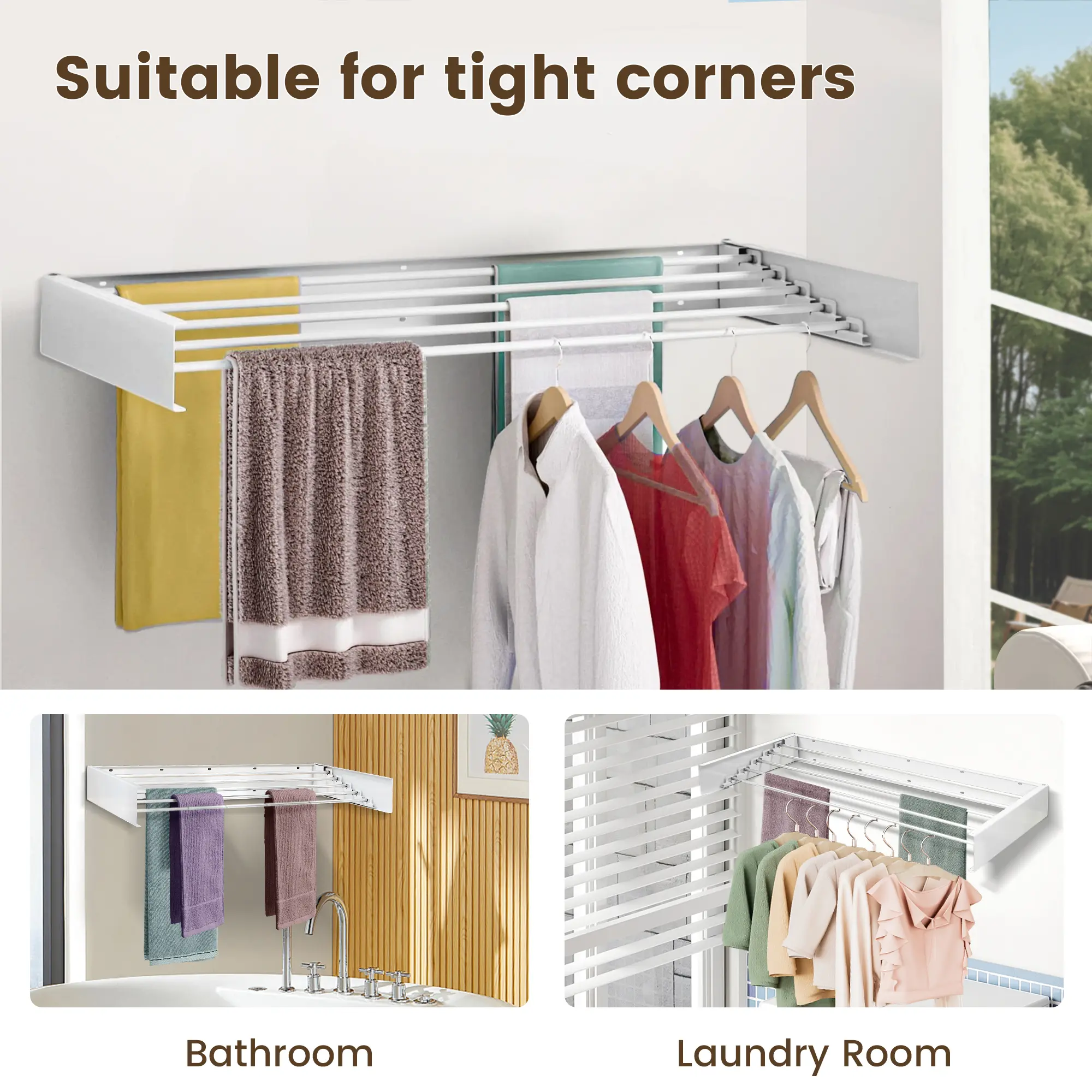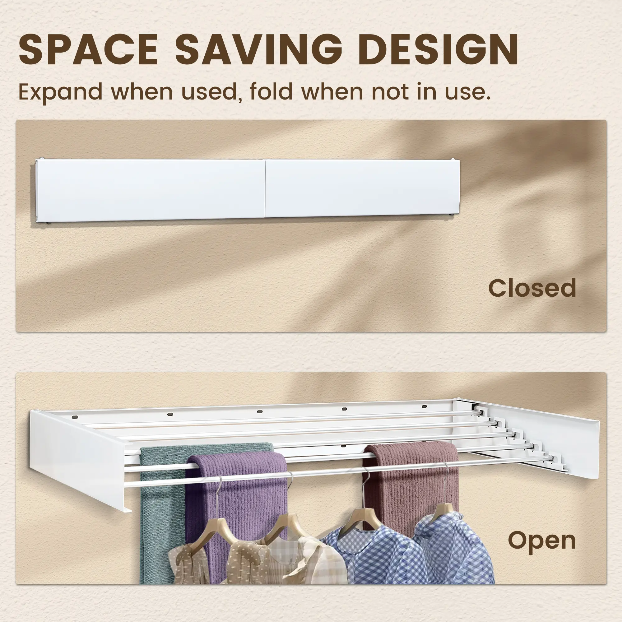 Space-Saving Design: The wall-mounted feature ensures that your drying rack doesn't take up valuable floor space, making it an ideal solution for small apartments, bathrooms, or laundry rooms.