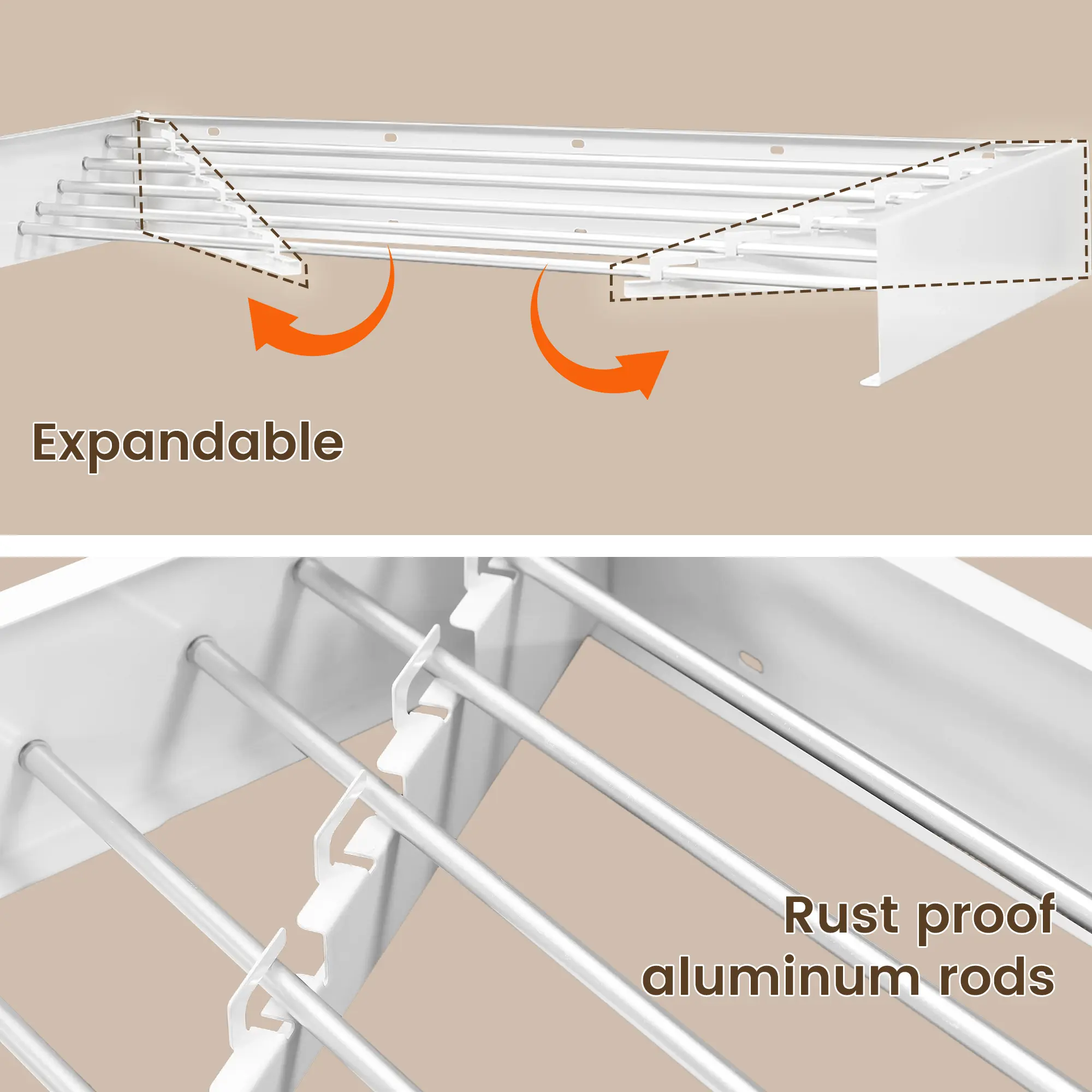 Sturdy and Durable: Built to support up to 60lbs, this drying rack can easily hold your heavy towels, garments, and linens without worry.