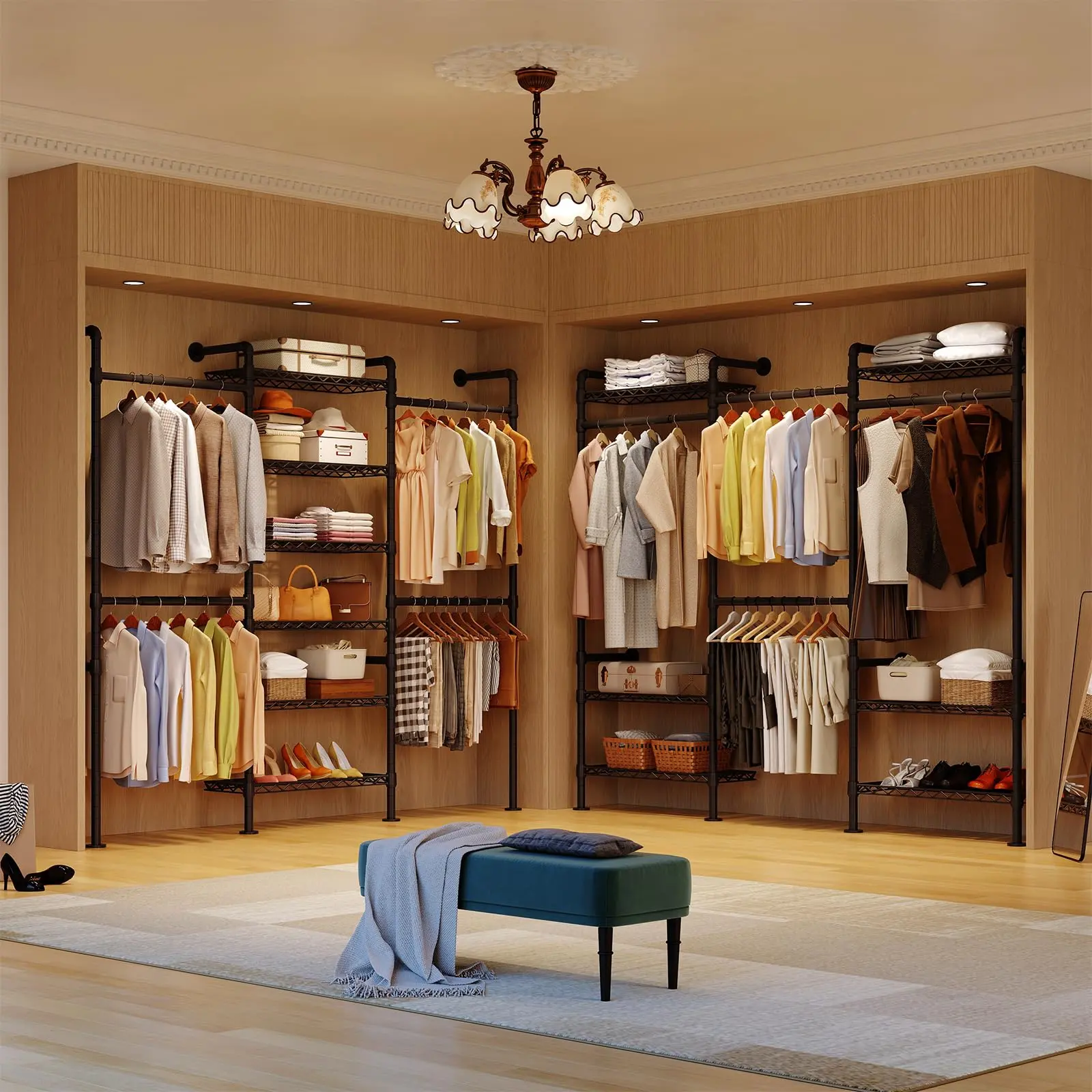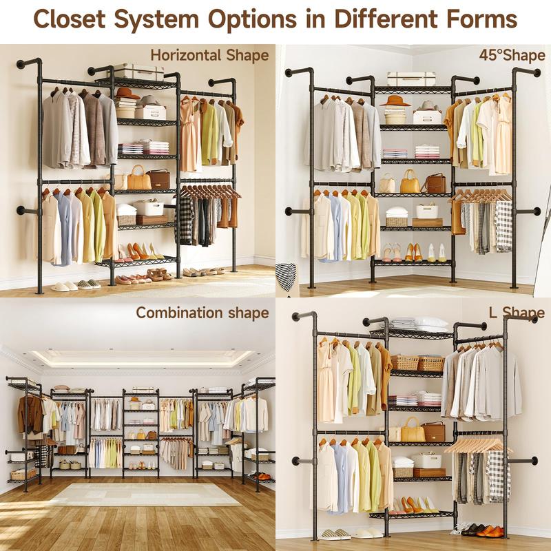 ·Maximize Your Storage Space: The closet system in L- or 45° shapes is perfect for corners and tight spaces such as apartments and bedrooms, while straight lines are ideal for walk-in closets and clothing stores, helping you efficiently utilize every inch of your room