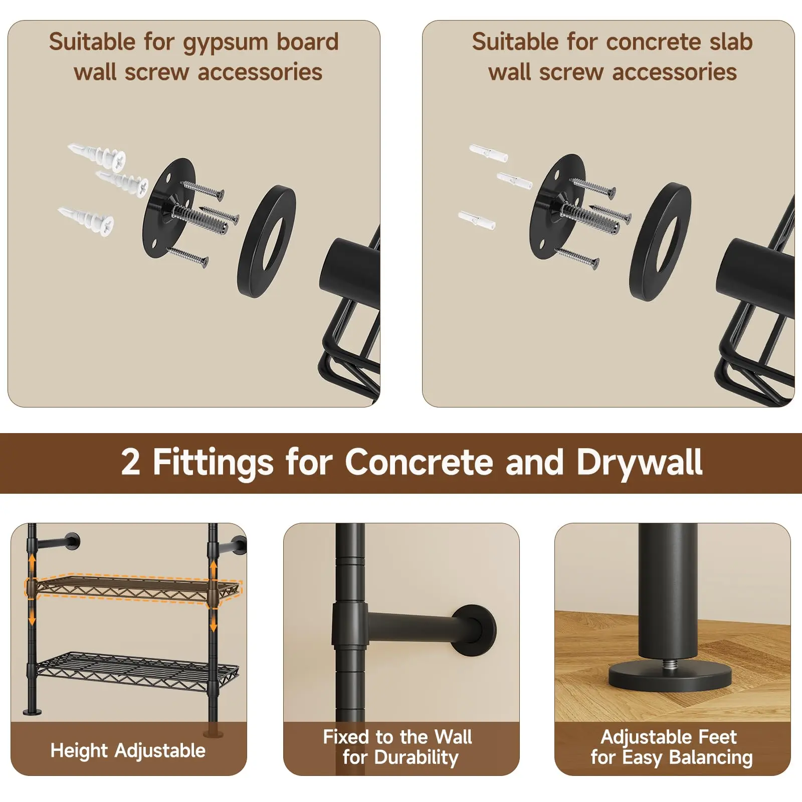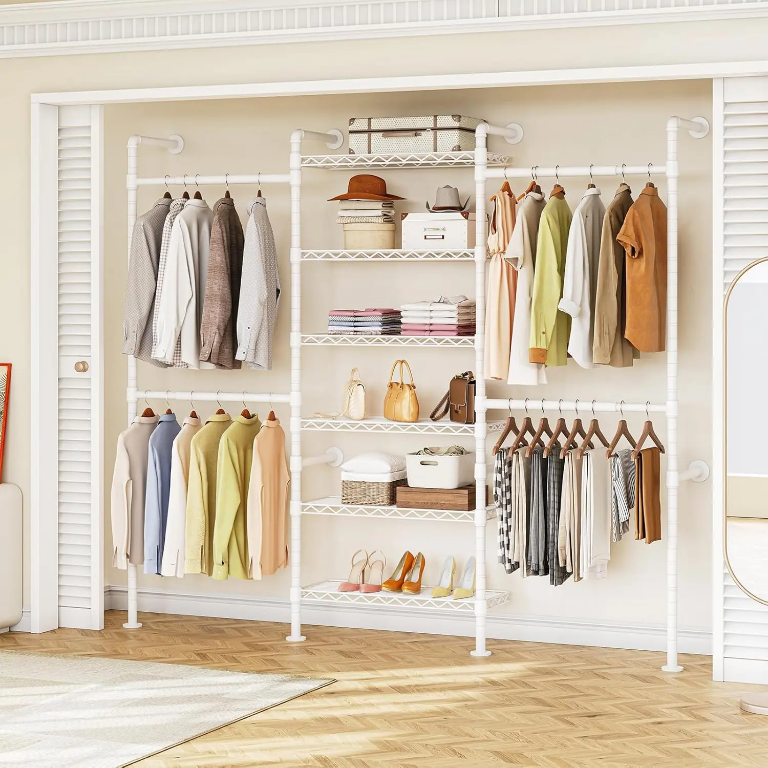 ·Upgraded Threaded Assembly for Quick Installation: We've upgraded the connection to the closet system. Poles connect directly via threaded joints, making installation faster and more secure compared to traditional screw-based methods. Save time and effort while enjoying a rock-solid setup