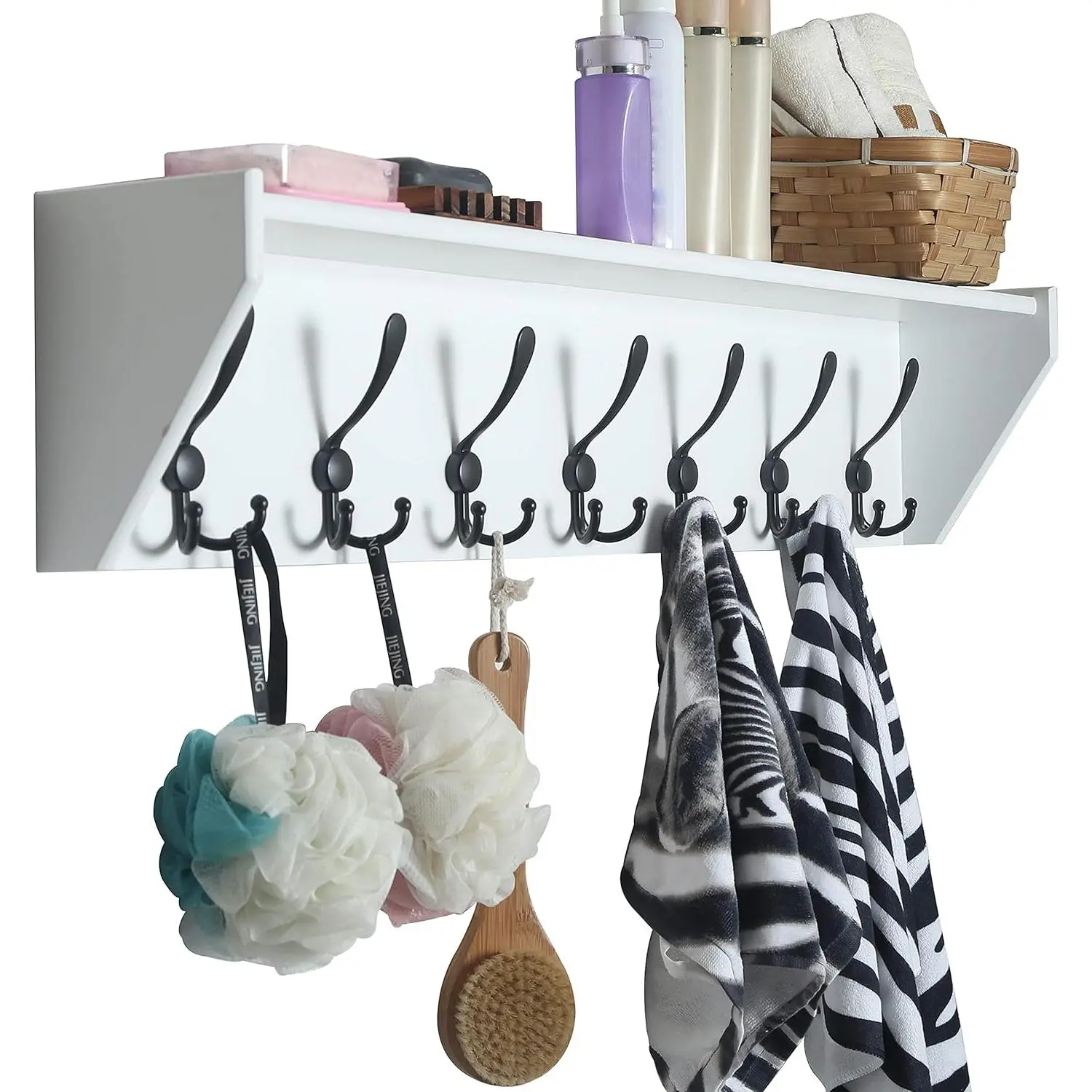 【Solid 】:Made of solid .Heavy duty wall shelf with hooks for daily use.