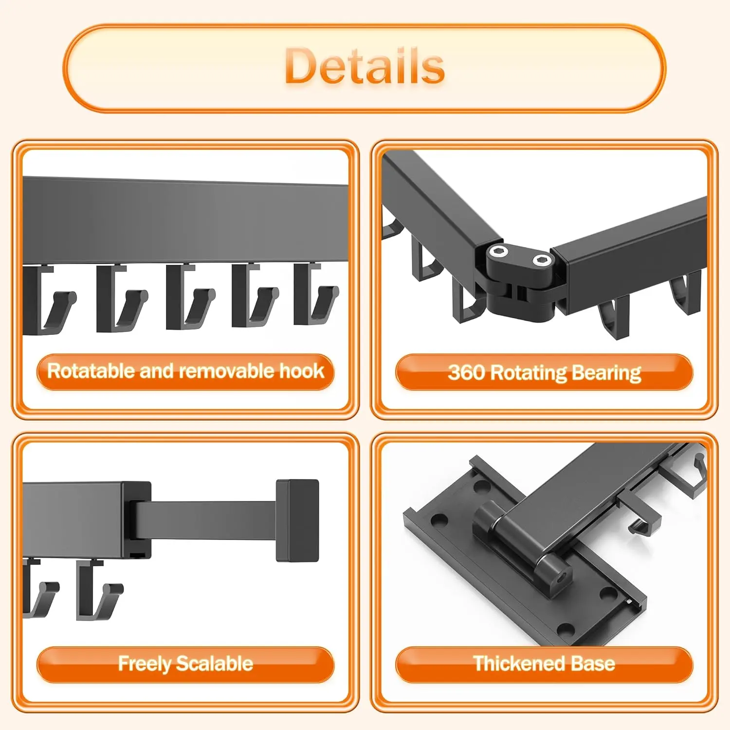 Clothes Rack, Wall-Mounted Clothes Rack, Foldable, Extendable, Foldable (J-Hook)