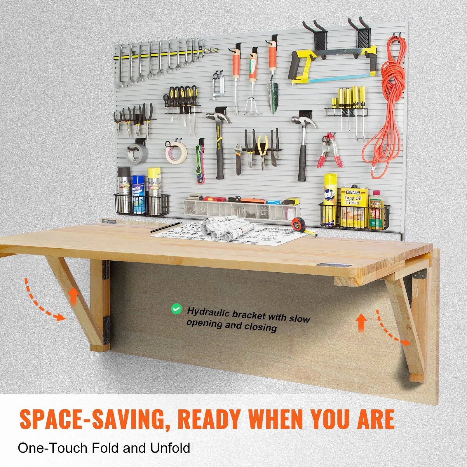 This wall mounted folding table effortlessly complements any home decoration with its easy-matching design.It's both practical and stylish, maximizing space and providing excellent storage solutions.