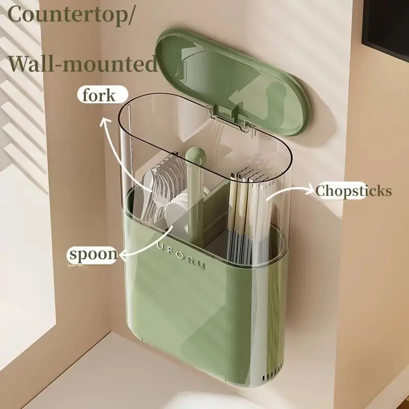 【Dust Cover Feature】: Equipped with a dust cover, this utensil rack protects your chopsticks from dust and keeps them clean.