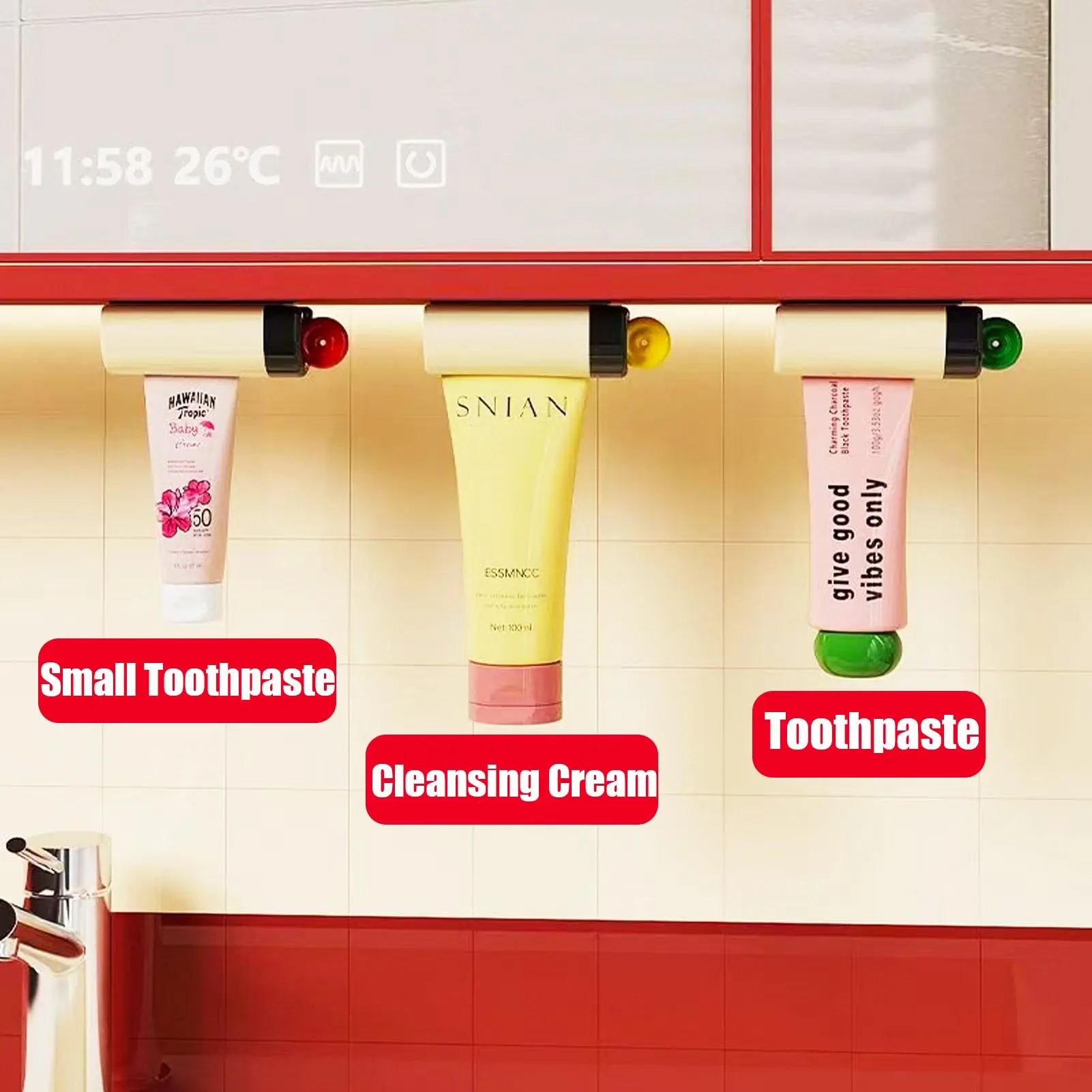 ·【Magnetic Attraction Design】Toothpaste extruder products adopt strong magnetic attraction design,which can be firmly attached to the bottom of mirror cabinet or metal surface,saving bathroom space,At the same time,it supports hanging upside down or vertical storage,which can meet the needs of different scenes and keep the countertop clean and beautiful.