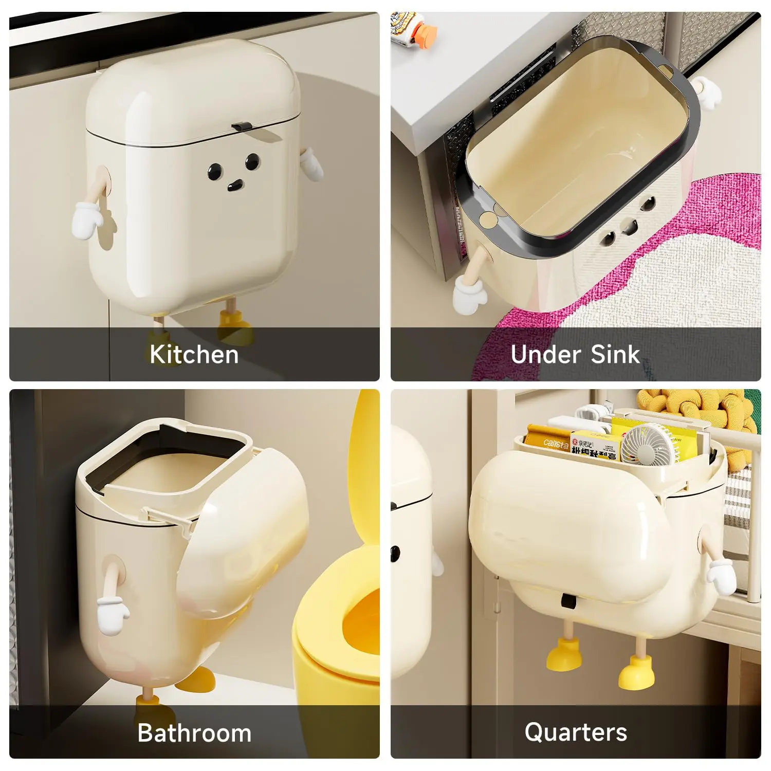 Ideal for kitchens, bathrooms, RVs, and offices, this versatile hanging trash can enhances cleanliness and organization. Its adaptability makes it suitable for various settings. Whether in a home or office, this bin helps keep areas tidy and organized, promoting a cleaner environment.