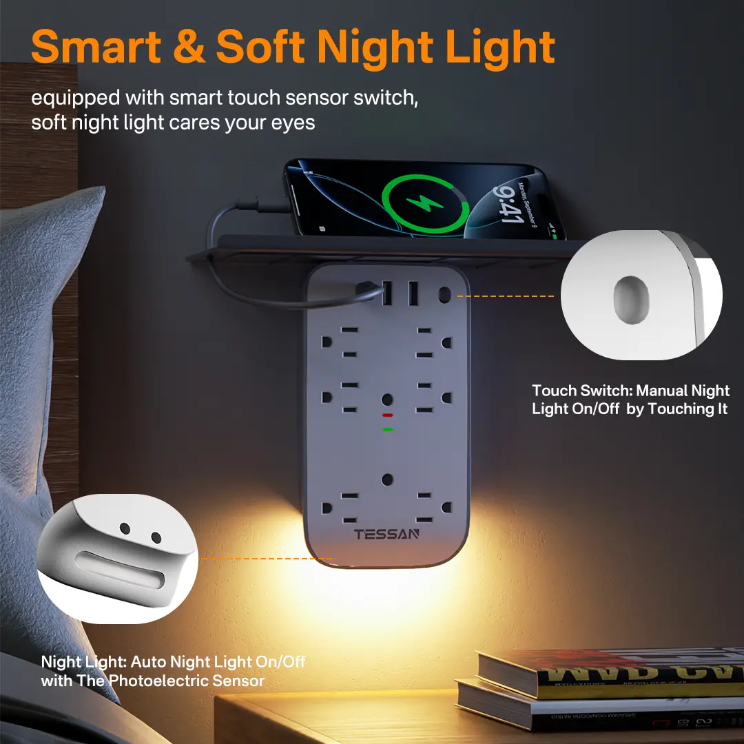 This was a great find. I have limited outlets in my bedroom. This gadget was perfect for what I needed. It gave me 3x more plugs & the USBs so I could plug in my phone and iPad without taking an outlet slot. The lil shelf is also a lifesaver. It is also a surge protector so it doesn’t overheat.