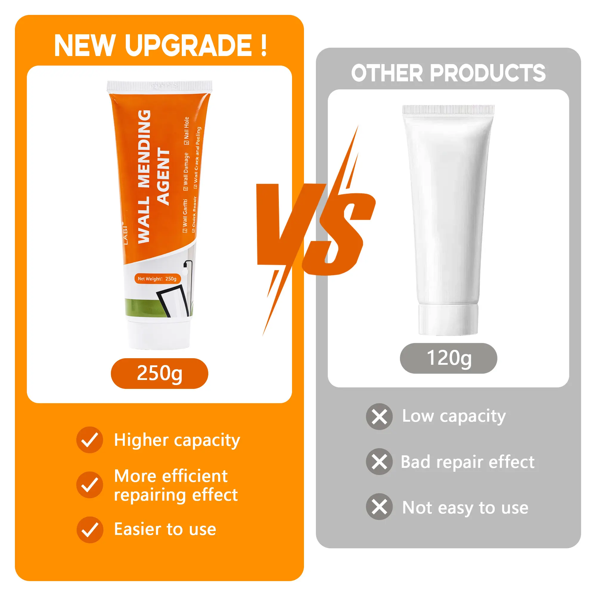 ·250g Wall Mending Agent: This kit includes a 250g wall mending agent, perfect for repairing nails, holes, and cracks. 🏠