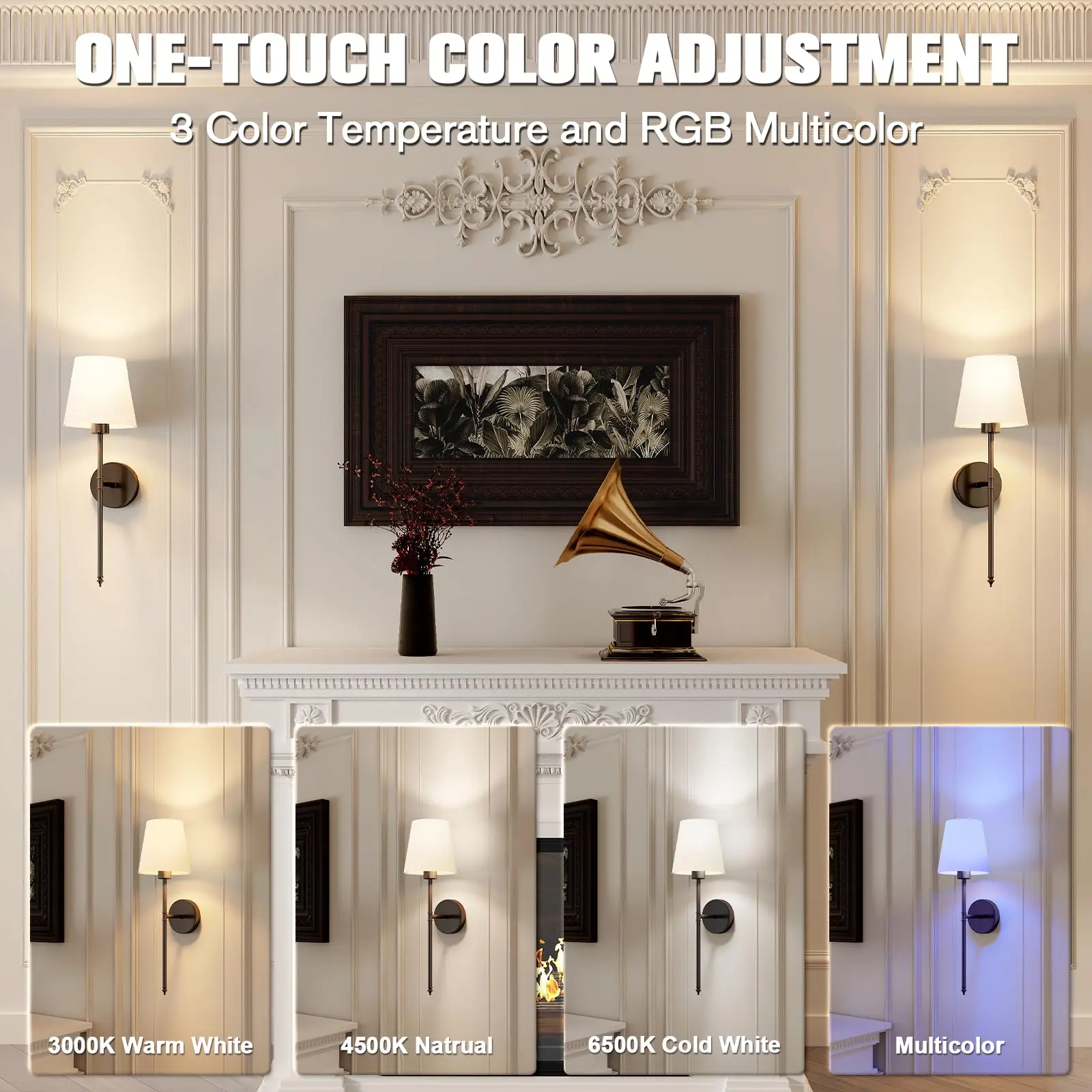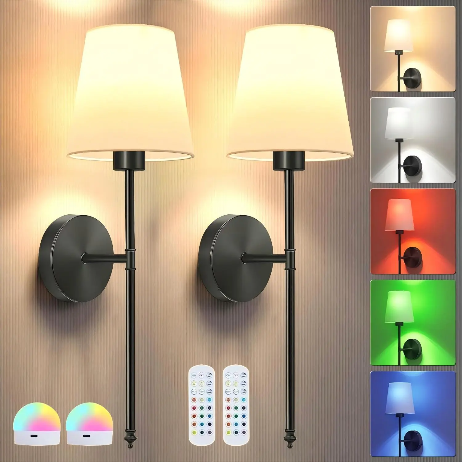 ·【Upgrade RGB ambient lighting】: Our Battery powered wall lights let you customize your lighting like a painter with their palette. Each wall sconce offers 7 RGB colors and 2 dynamic modes, as well as 3 color temperatures to choose from,you can choose your favorite colors for different occasions and moods. Rechargeable, includes USB charging cable (Type-C).