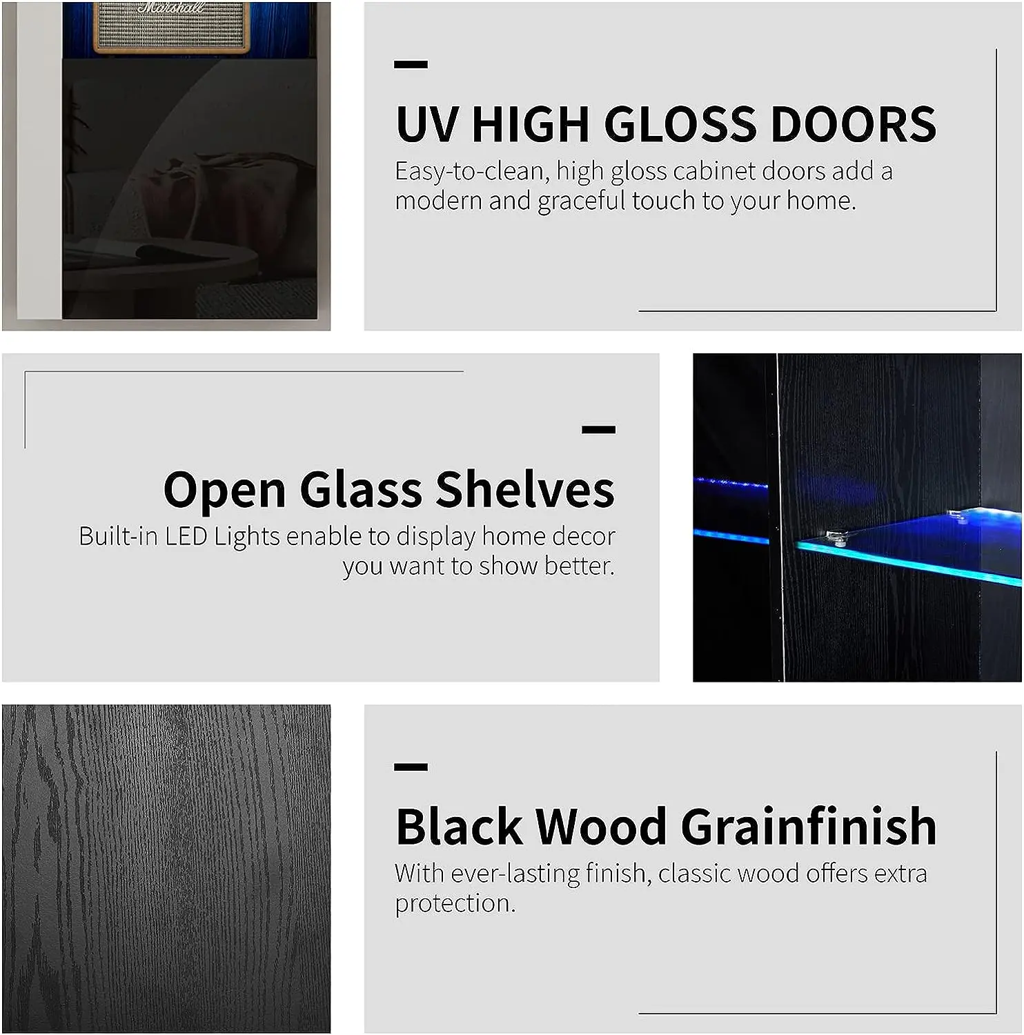 ·[20-COLORS LED LIGHTS] The wall-mounted cabinets come with LED kit that contains 20 changeable colors, 5 levels dimmer, 10 levels speed and 22 dynamic modes, customizing unique lighting experience in your home. Remote control included.
