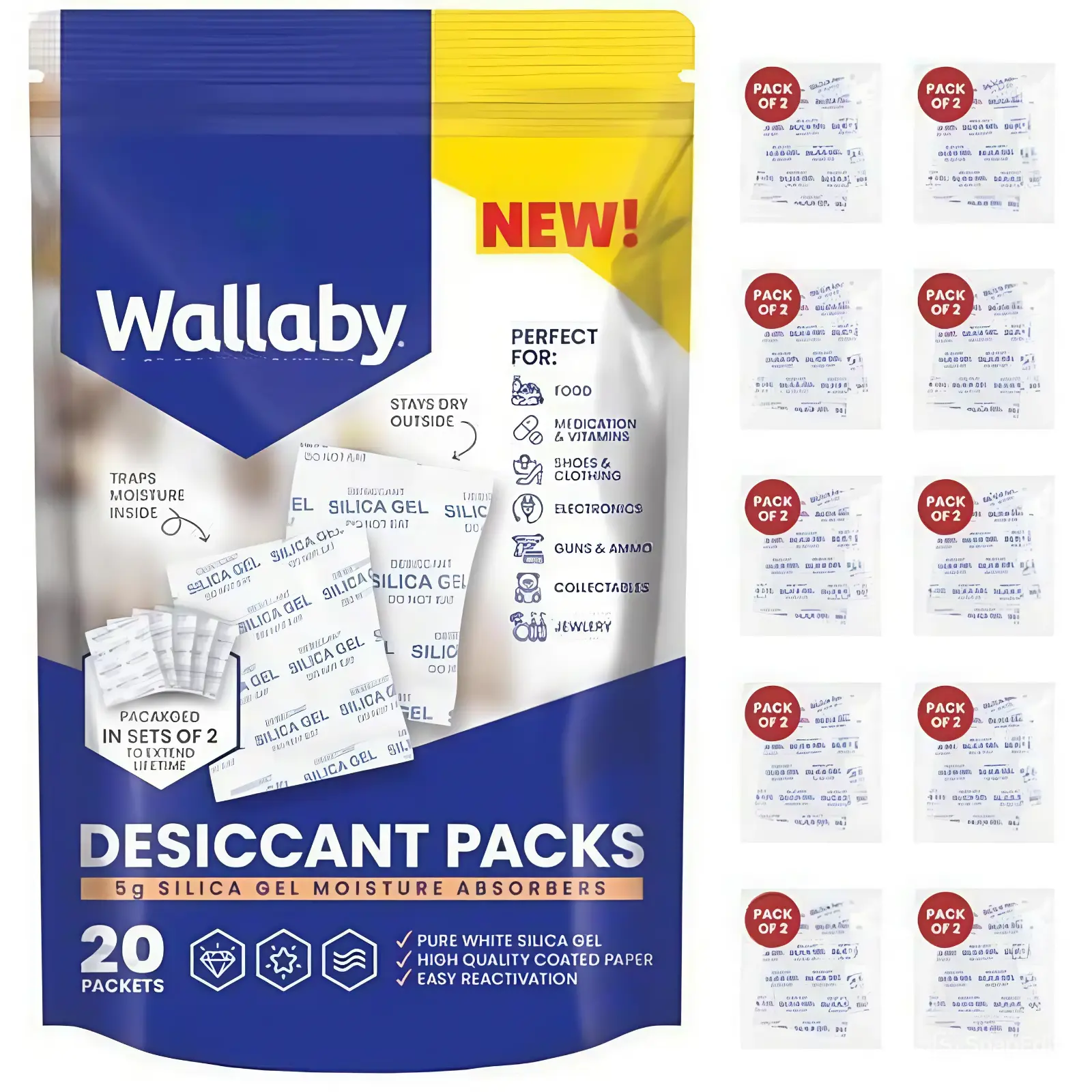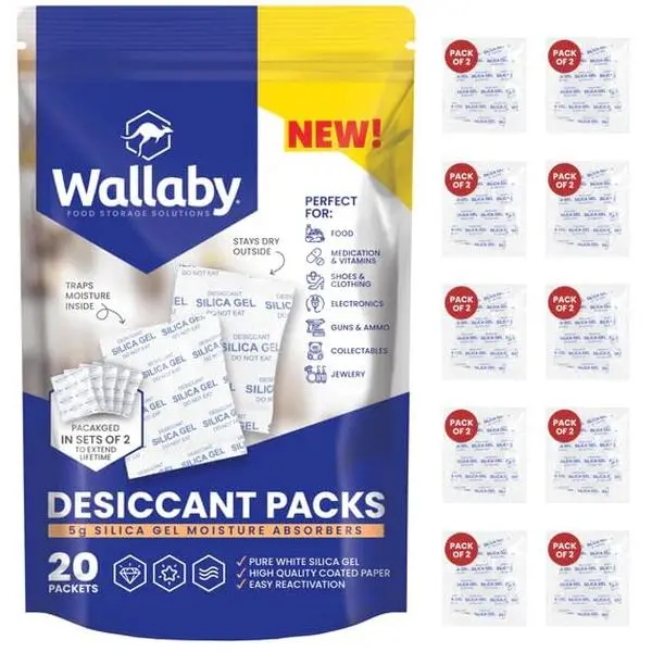¡PROTECT VARIOUS ITEMS: Food & medication-safe, you can keep vitamins, seeds, spices, pet food, 3D filaments, guns, ammo, collectables, jewelry, watches, cameras, clothing, shoes, decorations, electronics, and more dry with Wallaby silica gel packets.