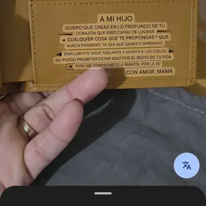 Es una cartera con un dedicatoria muy hermosa sólo que tenía que asegurarme que dijera con amor de Mamá y no me di cuenta
