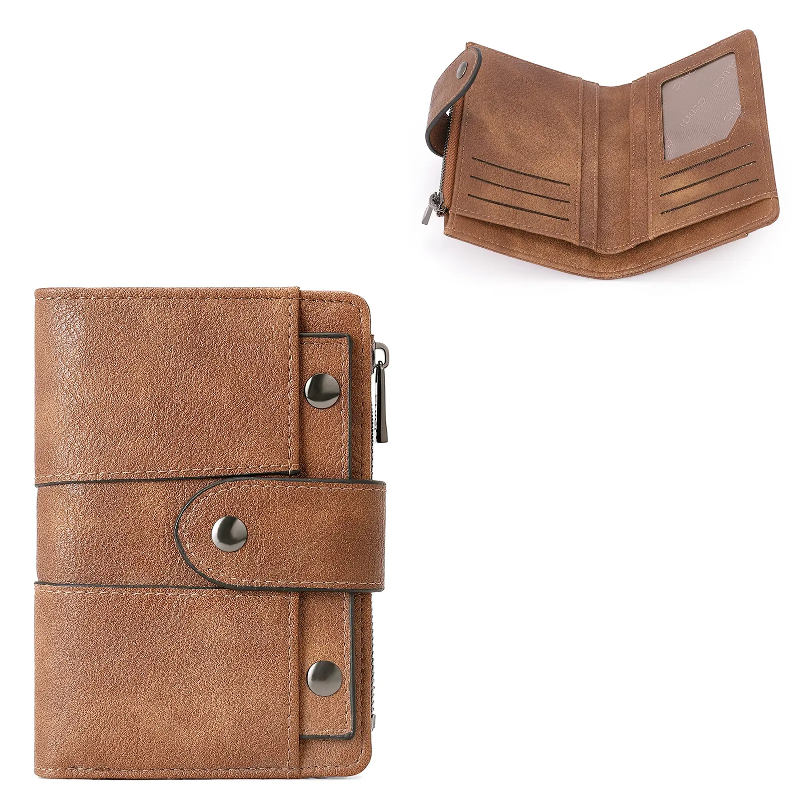 This women's wallet is crafted from high - quality soft vegan leather. It features a snap and smooth zipper closure. The durable material provides a comfortable touch.