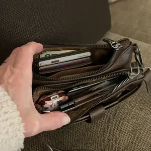Over it. Place for cards and cash. Fits my iphone 16 pro max. Room for smaller incidentals. Great small cross body. Love the color.