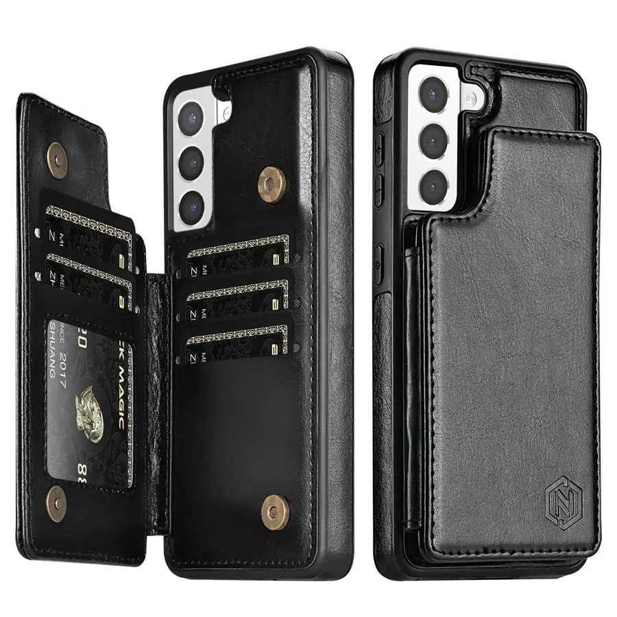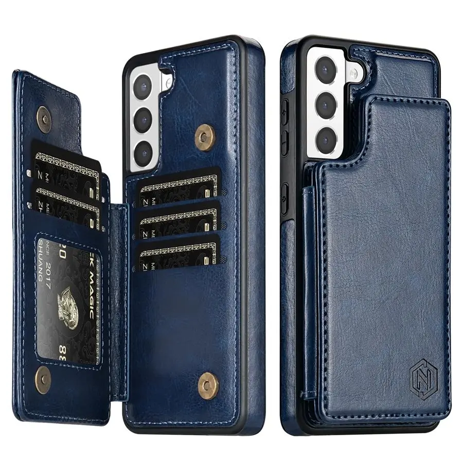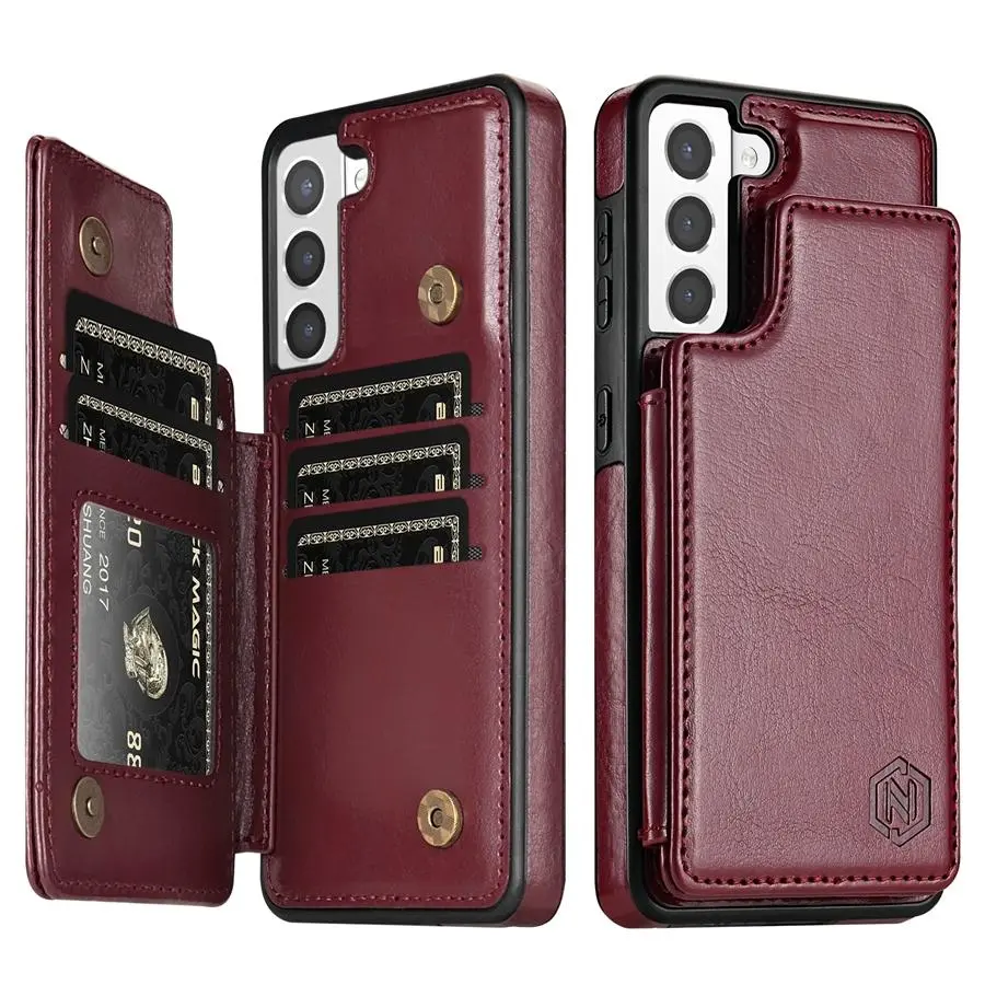 [Color]: Wine Red,Blue,Purple,Black,Brown,Rose gold [Advantage]: Leather Wallet+Magnetic Flip+Stand Support+Card Slots+RFID Blocking. [Design]: Fashion Design,Easy to put on and easy to take off. [Function]: Great protection of your phone from dirt, scratches, and damag. [Package]: 1pc x Phone case. [Feature]: Effectively prevent illegal intrusion of bank cards, credit cards and ID cards, and better protect our property and information security.