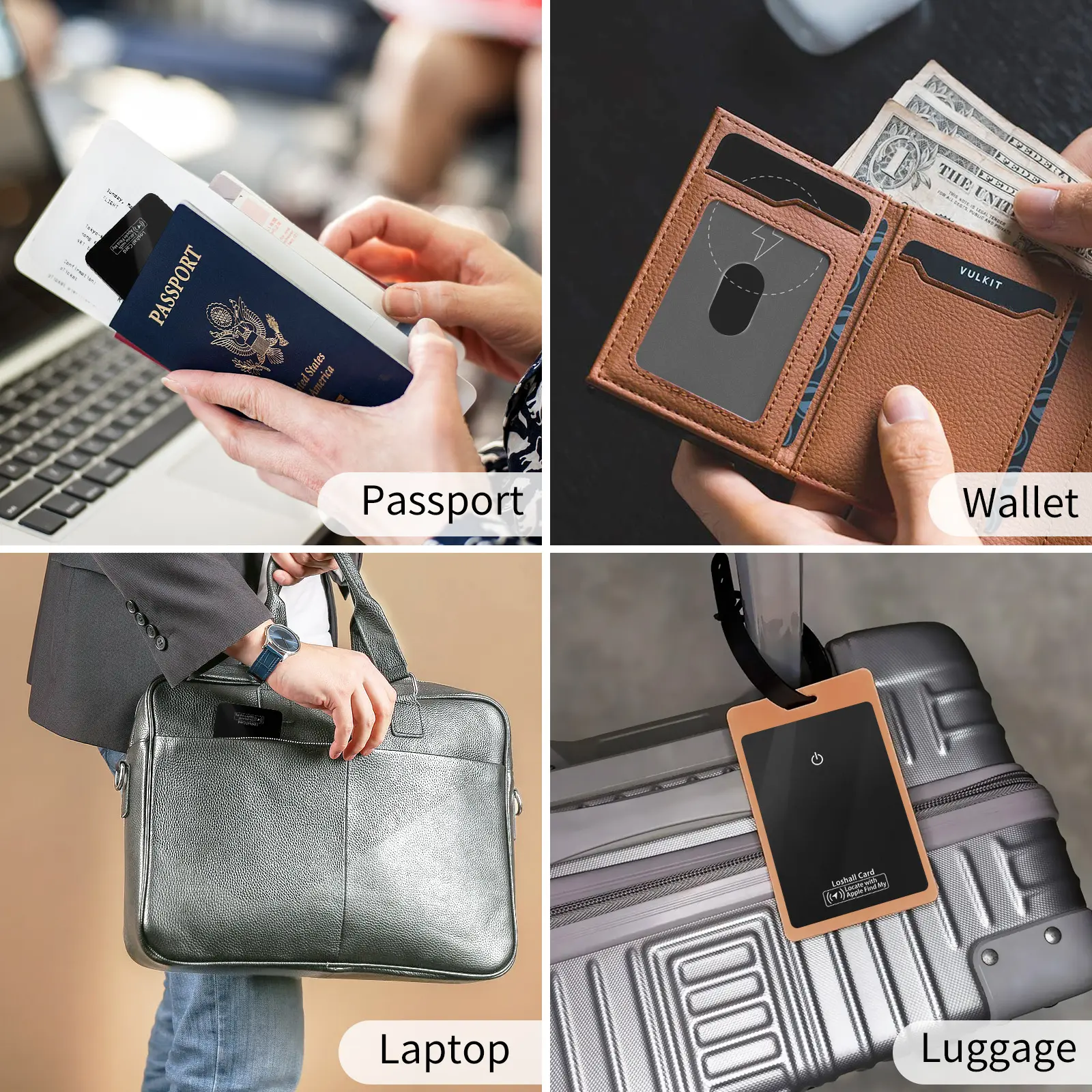 Track and Find Your Items: Never worry about losing your wallet, passport case or other valuables with the wallet tracker. It works with Apple's Find My app, making it easier to track items. Within Bluetooth range, you can Play Sound in Find My to quickly locate items. (Note: Only supports iOS devices, not for Android.)