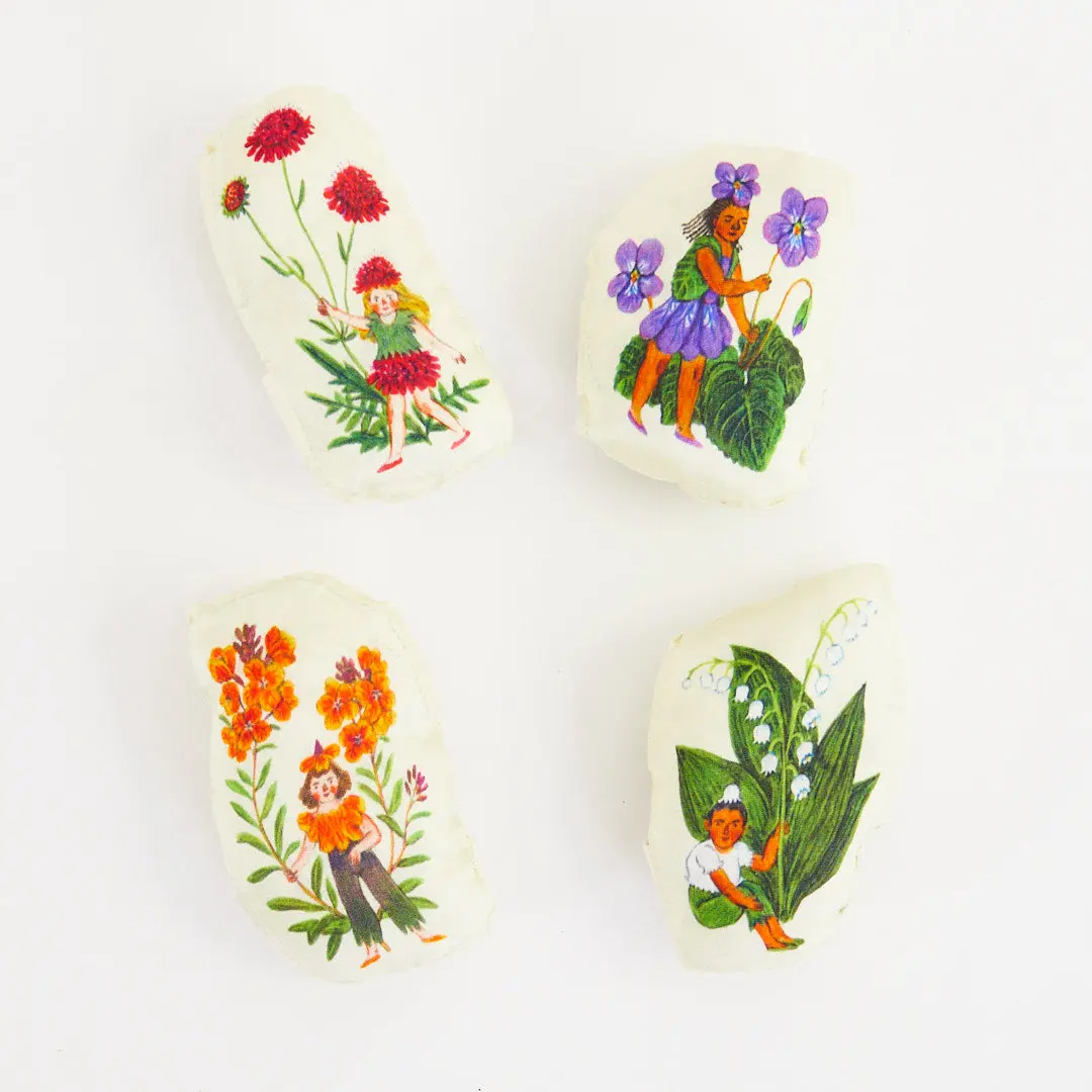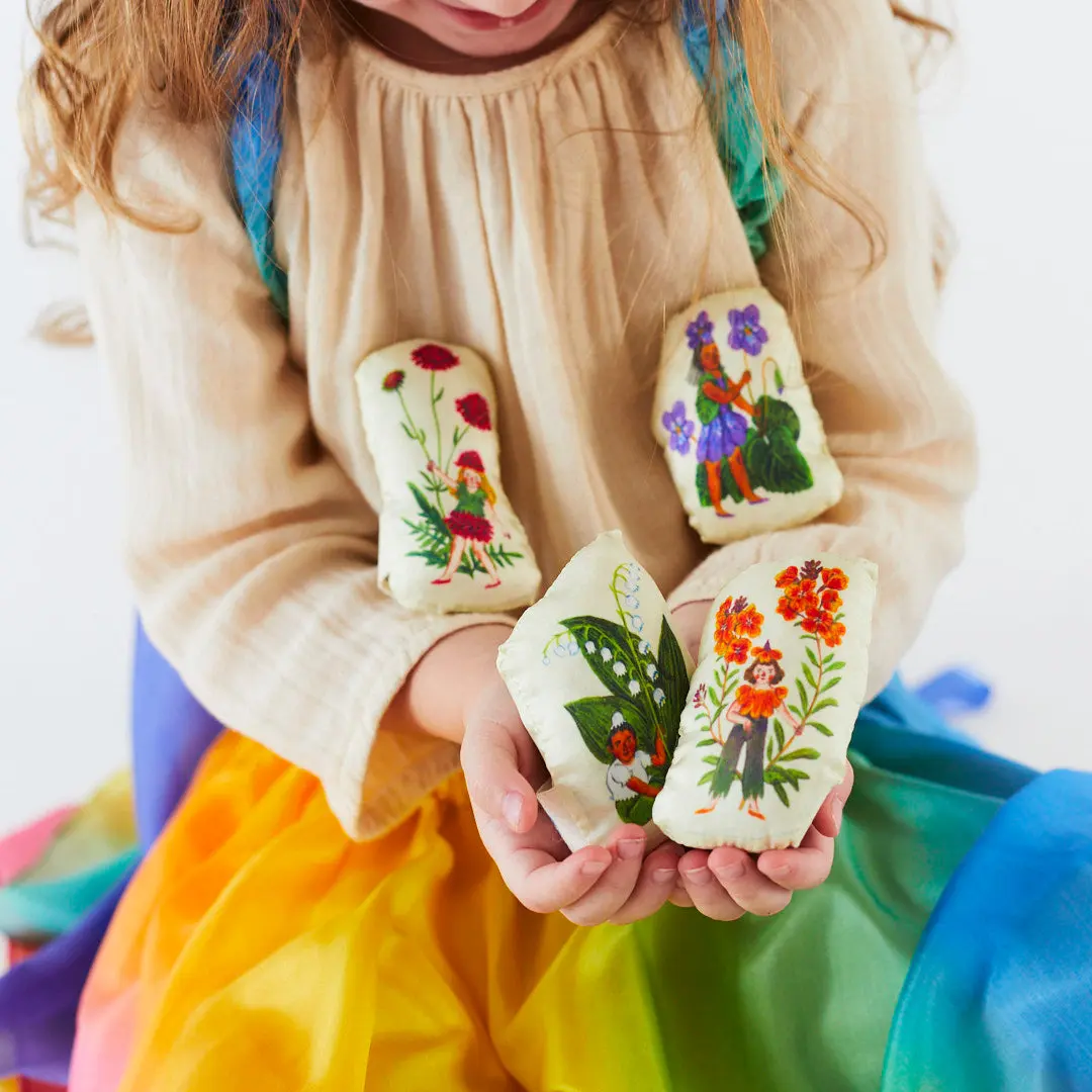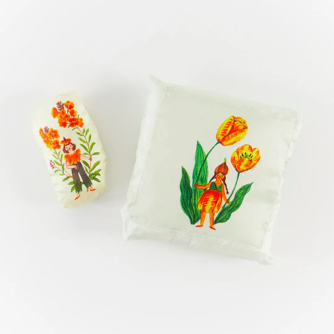 Crafted from soft silk, these petite pillows are perfect for doll beds, fairy tea parties, or imaginative storytelling adventures. A magical addition to any playroom! Illustrated by beloved artist Phoebe Wahl.