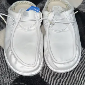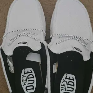 Finally got my Hey Dude slides and they fit really well. I’m just scared that they’ll get dirty fast being white canvas shoes. Don’t mind my socks. The only issue is with the delivery. They said I signed for the shoes, but the driver just tossed it by the front patio. Nothing to do with the seller.