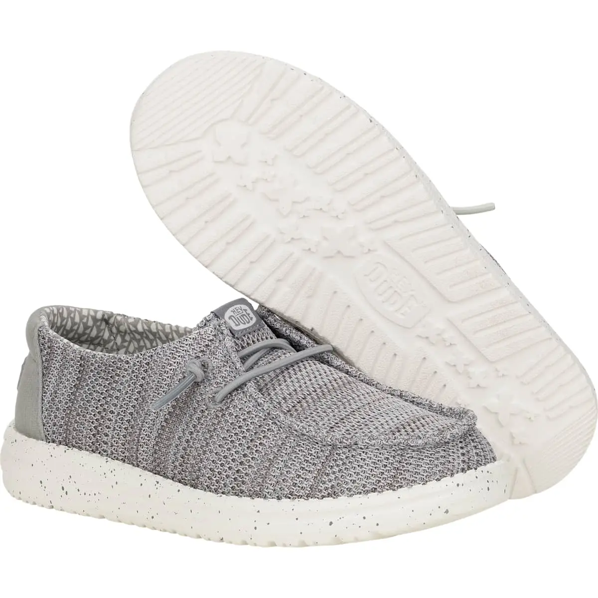 Stretch with the best in the Wally Youth Stretch Mesh. Classic HEYDUDE™ construction, stretch mesh material upper and elastic laces mean slip-on ease, comfort and lightness from top to bottom. Rock it all in foot hugging style.