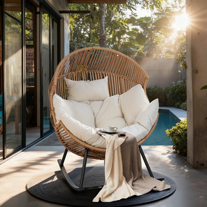 ·Unmatched comfortïŒThis outdoor chair comes with a soft seat and backrest cushion that is not only washable, but also breathable and comfortable. The soft curves and padding are like a warm embrace of your body, providing you with excellent support. Whether you're looking for a cozy sanctuary to read alone or a place to unwind after a hard day, this egg chair is the ultimate getaway.