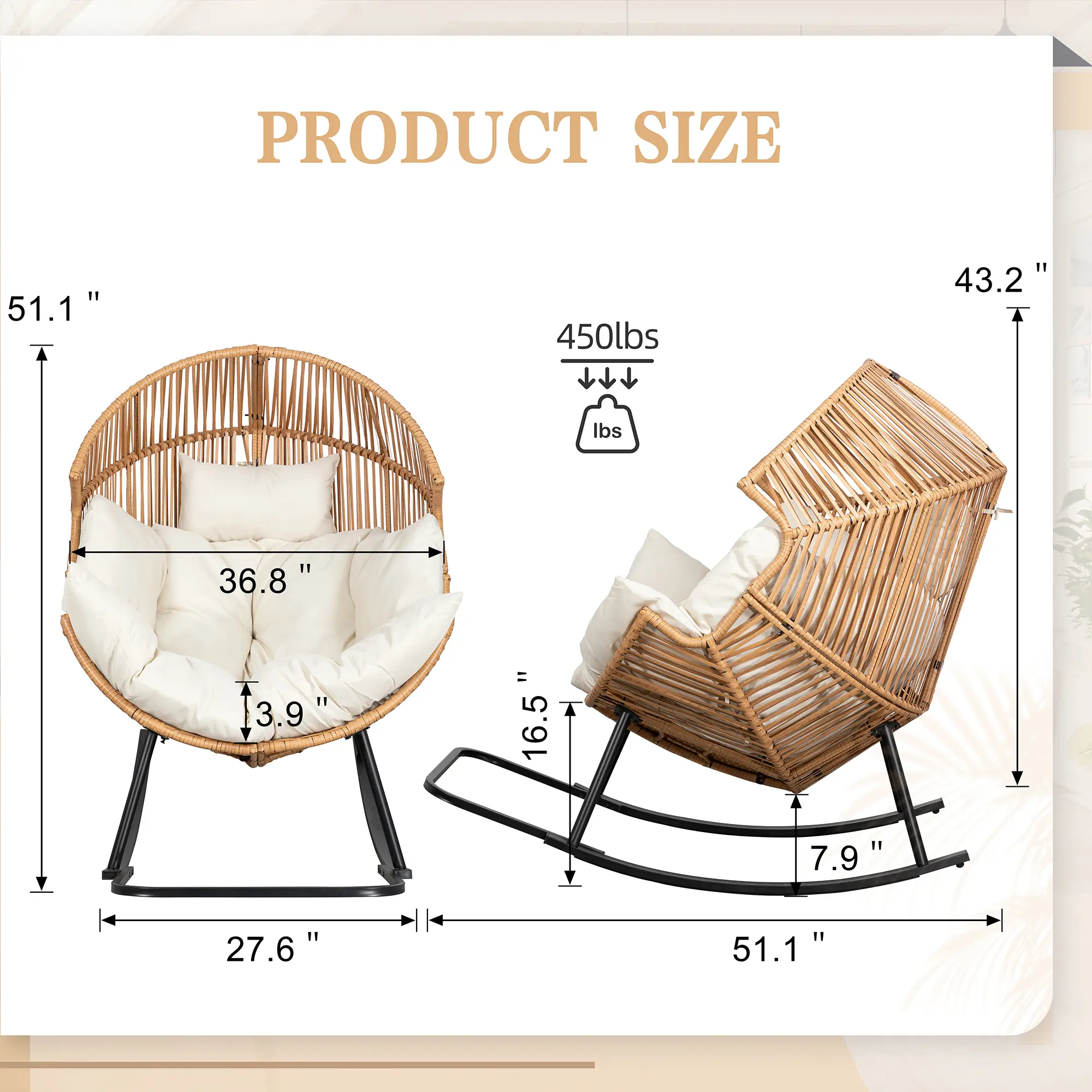 ·Quality Materials:We use high-quality wicker for this terrace egg chair. The wicker is durable and not easy to break, ensuring the longer service life of this set of products. This stand egg chair is rock solid and with 450lbs load capacity! Made of a robust powder-coated steel frame for greater stability and durability.