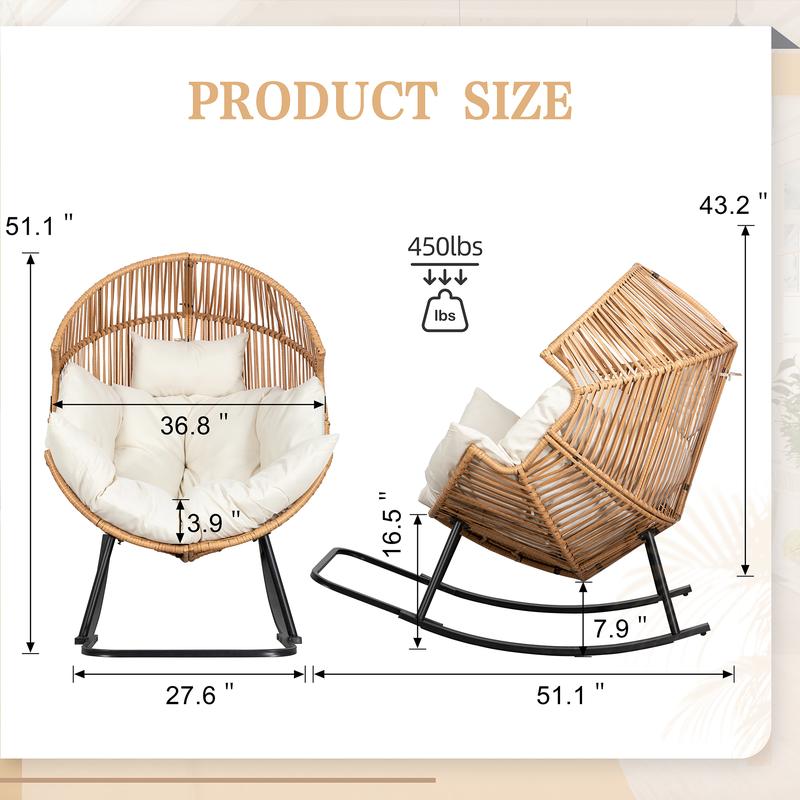 ·Quality MaterialsïŒWe use high-quality wicker for this terrace egg chair. The wicker is durable and not easy to break, ensuring the longer service life of this set of products. This stand egg chair is rock solid and with 450lbs load capacity! Made of a robust powder-coated steel frame for greater stability and durability.