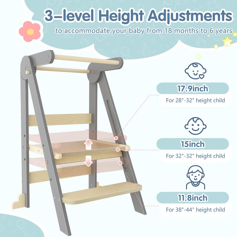 2. Cultivates Independence: The foldable kitchen step stool provides a secure platform for babies to join parents in cooking and other activities. It fosters autonomy and independence while ensuring safetyâletting kids participate confidently!