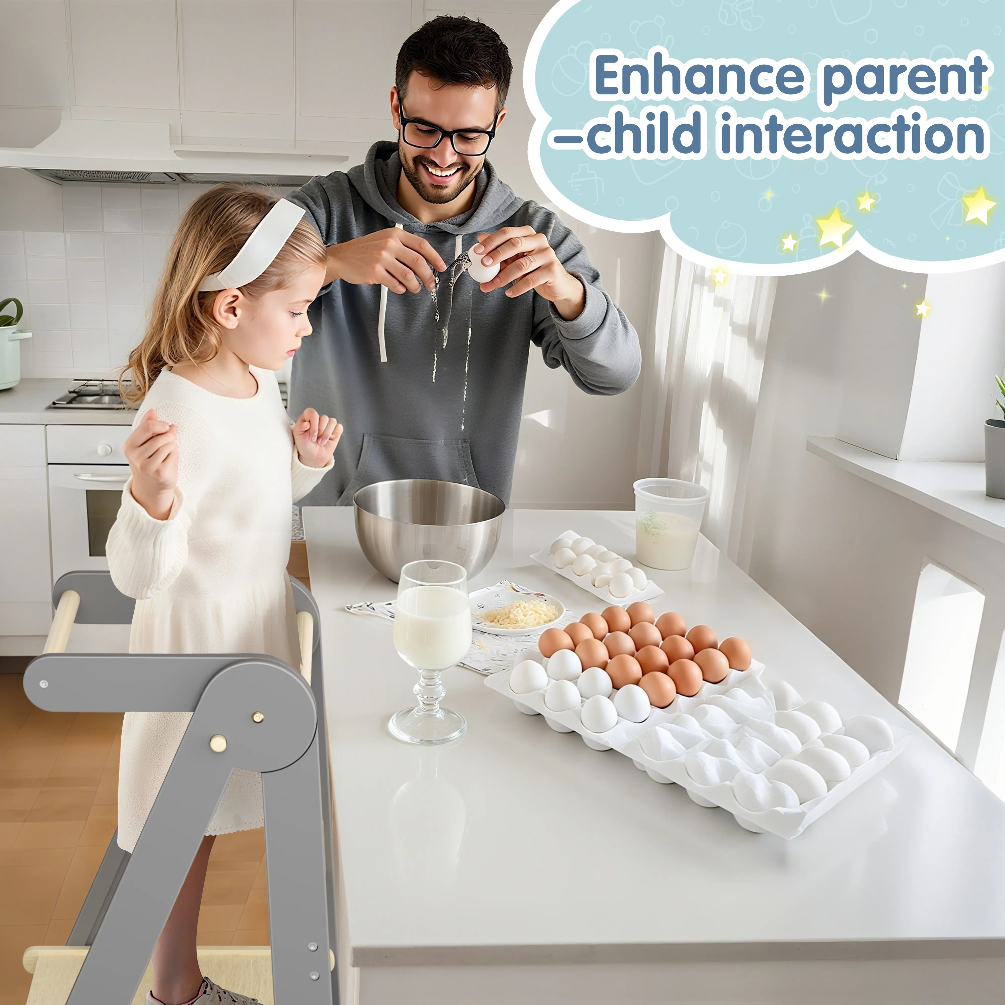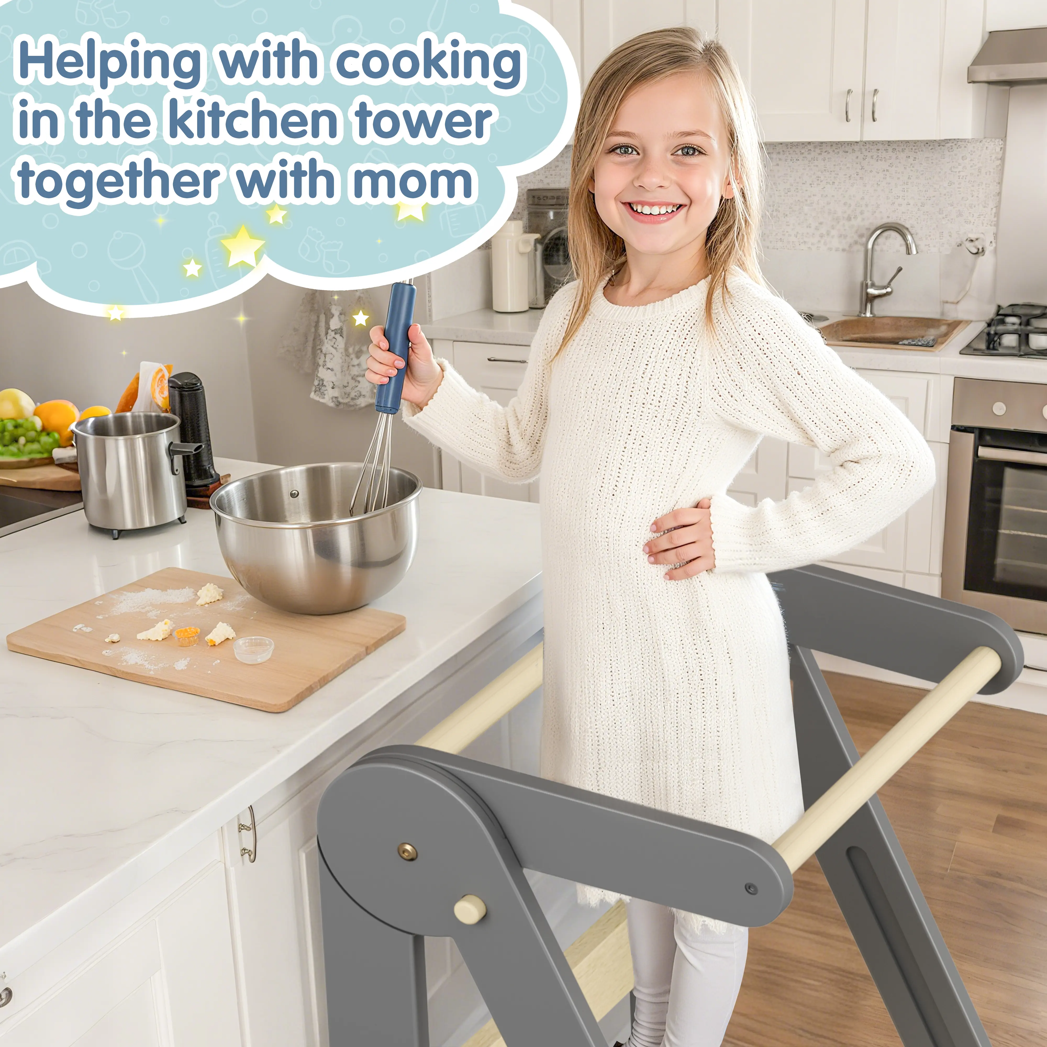 2. Cultivates Independence: The foldable kitchen step stool provides a secure platform for babies to join parents in cooking and other activities. It fosters autonomy and independence while ensuring safety—letting kids participate confidently!