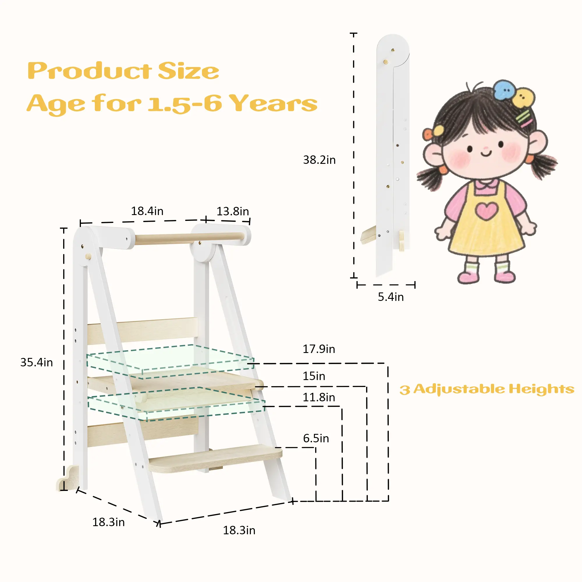 3. Adjustable Height for Long-term Use: Suitable for toddlers aged 18 months to 6 years. This kids' standing tower grows with your child: adjust the height to keep them in a comfortable, age-appropriate posture as they develop.