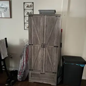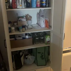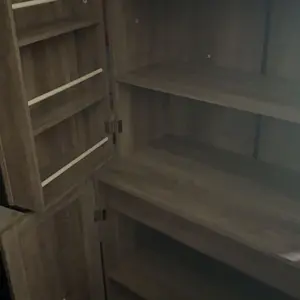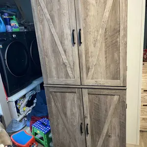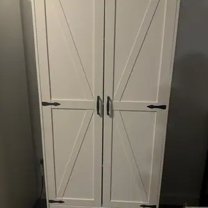 Absolutely LOVE this item! Had it put together for me since I wasn’t up to it myself. It is perfect! Looks beautiful in my kitchen and holds everything I wanted out of sight. Ton of room for everything! Would work in any room.