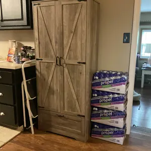 Fast shipping, easy assembly, and love it in my kitchen! Great buy! I’m very happy with it! Perfect pantry with plenty of space when you don’t have one!