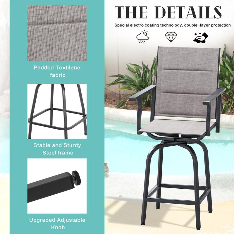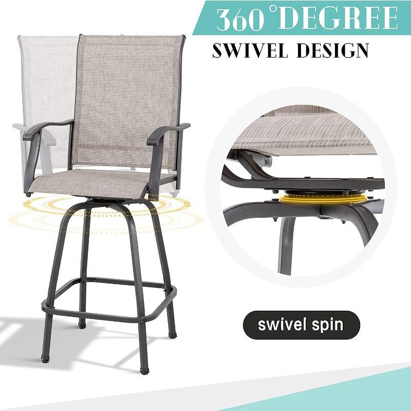 ·Upgrade to adjustable legs: Set includes 2 patio rotating bar stools with adjustable knobs for even leg distribution. Easy to assemble, ensures stability and allows you to enjoy your outdoor space with no worries