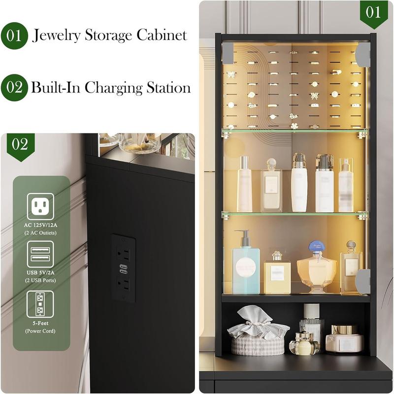 Vanity Desk with Glass Top, Black Vanity with Mirror and Lights, Power Outlet, Jewelry Storage, 3 Adjustable Lighting Modes, Makeup Vanity with 2 Drawers for Bedroom #interiordesign #interiordecor #makeupstorage #entrywaytable #laptopdesk #dollhousemakeover #electricstandingdesk✅ #lightedvanitymirror #adjustabledesk #makeupbagwithlights