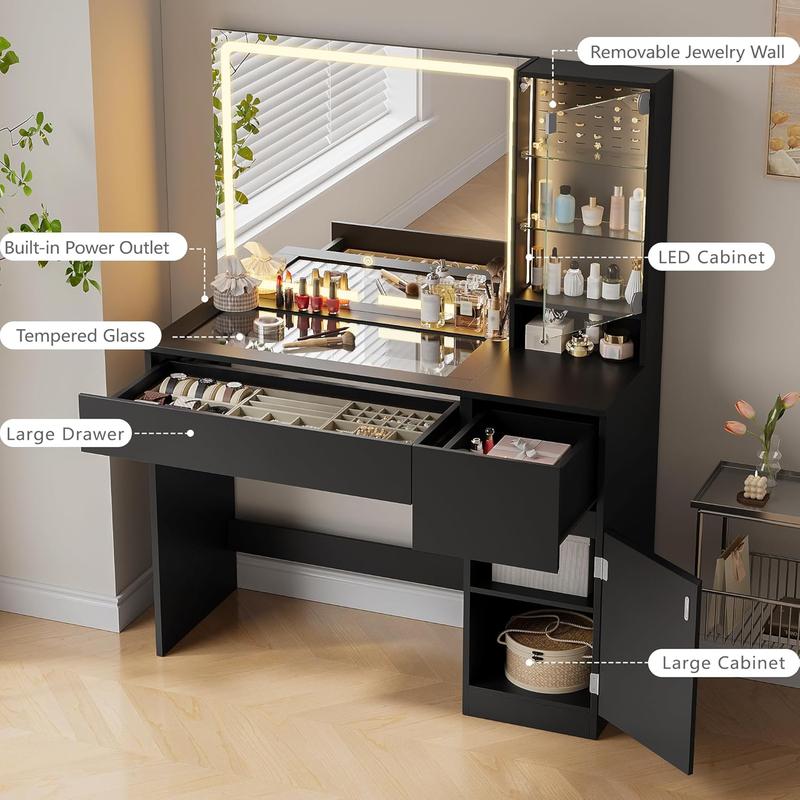 wanan 41" Vanity Desk with Glass Top, Black Vanity with Mirror and Lights, Power Outlet, Jewelry Storage, 3 Adjustable Lighting Modes, Makeup Vanity with 2 Drawers for Bedroomwanan 41" Vanity Desk with Glass Top, Black Vanity with Mirror and Lights, Power Outlet, Jewelry Storage, 3 Adjustable Lighting Modes, Makeup Vanity with 2 Drawers for Bedroomwanan 41" Vanity Desk with Glass Top, Black Vanity with Mirror and Lights, Power Outlet, Jewelry Storage, 3 Adjustable Lighting Modes, Makeup Vanity with 2 Drawers for Bedroomwanan 41" Vanity Desk with Glass Top, Black Vanity with Mirror and Lights, Power Outlet, Jewelry Storage, 3 Adjustable Lighting Modes, Makeup Vanity with 2 Drawers for Bedroomwanan 41" Vanity Desk with Glass Top, Black Vanity with Mirror and Lights, Power Outlet, Jewelry Storage, 3 Adjustable Lighting Modes, Makeup Vanity with 2 Drawers for Bedroomwanan 41" Vanity Desk with Glass Top, Black Vanity with Mirror and Lights, Power Outlet, Jewelry Storage, 3 Adjustable Lighting Modes, Makeup Vanity with 2 Drawers for Bedroomwanan 41" Vanity Desk with Glass Top, Black Vanity with Mirror and Lights, Power Outlet, Jewelry Storage, 3 Adjustable Lighting Modes, Makeup Vanity with 2 Drawers for Bedroomwanan 41" Vanity Desk with Glass Top, Black Vanity with Mirror and Lights, Power Outlet, Jewelry Storage, 3 Adjustable Lighting Modes, Makeup Vanity with 2 Drawers for Bedroomwanan 41" Vanity Desk with Glass Top, Black Vanity with Mirror and Lights, Power Outlet, Jewelry Storage, 3 Adjustable Lighting Modes, Makeup Vanity with 2 Drawers for Bedroomwanan 41" Vanity Desk with Glass Top, Black Vanity with Mirror and Lights, Power Outlet, Jewelry Storage, 3 Adjustable Lighting Modes, Makeup Vanity with 2 Drawers for Bedroom